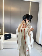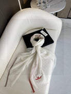 CC Scarf 180 CM In White With Red Border Cashmere Silk 287510