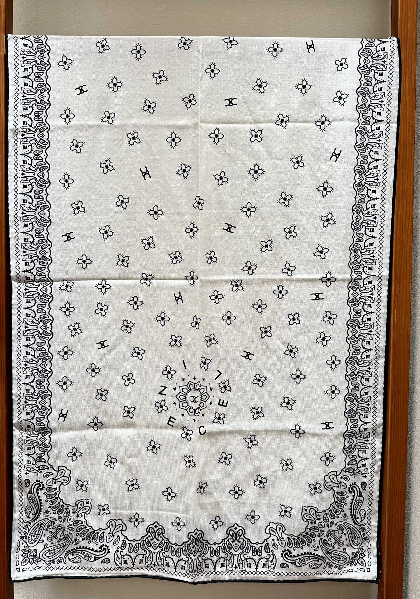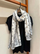 CC Scarf 185 CM In White Black Cashmere Silk 371904