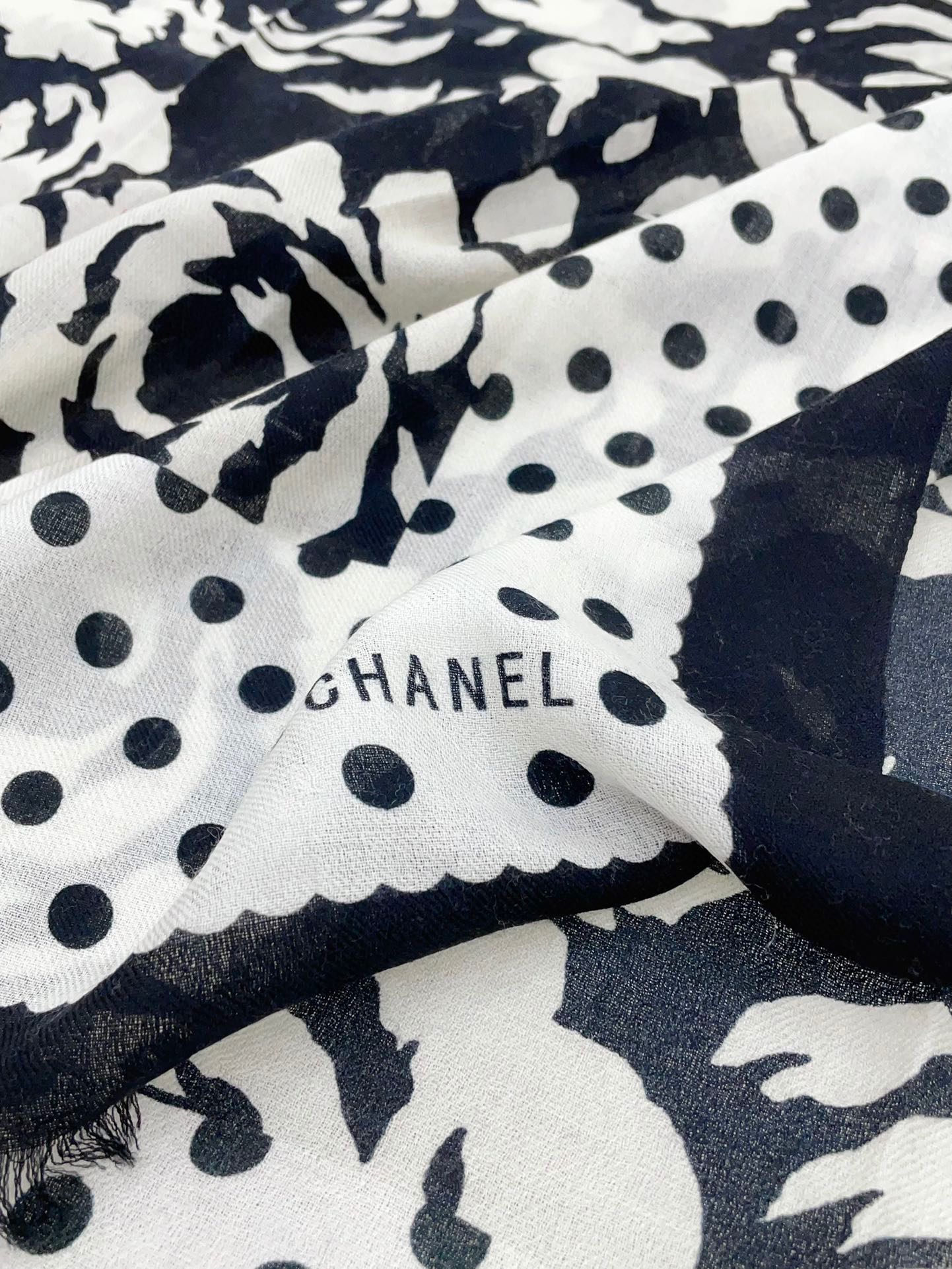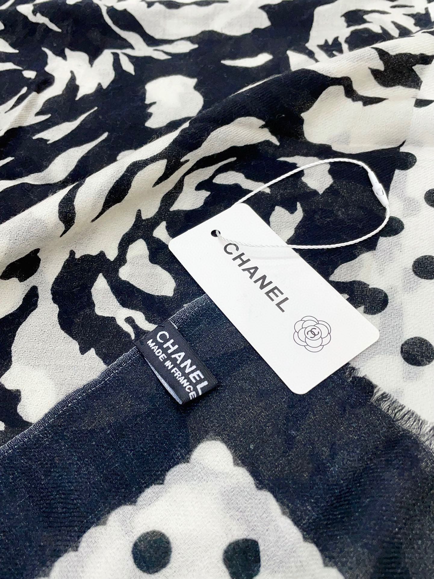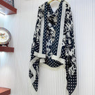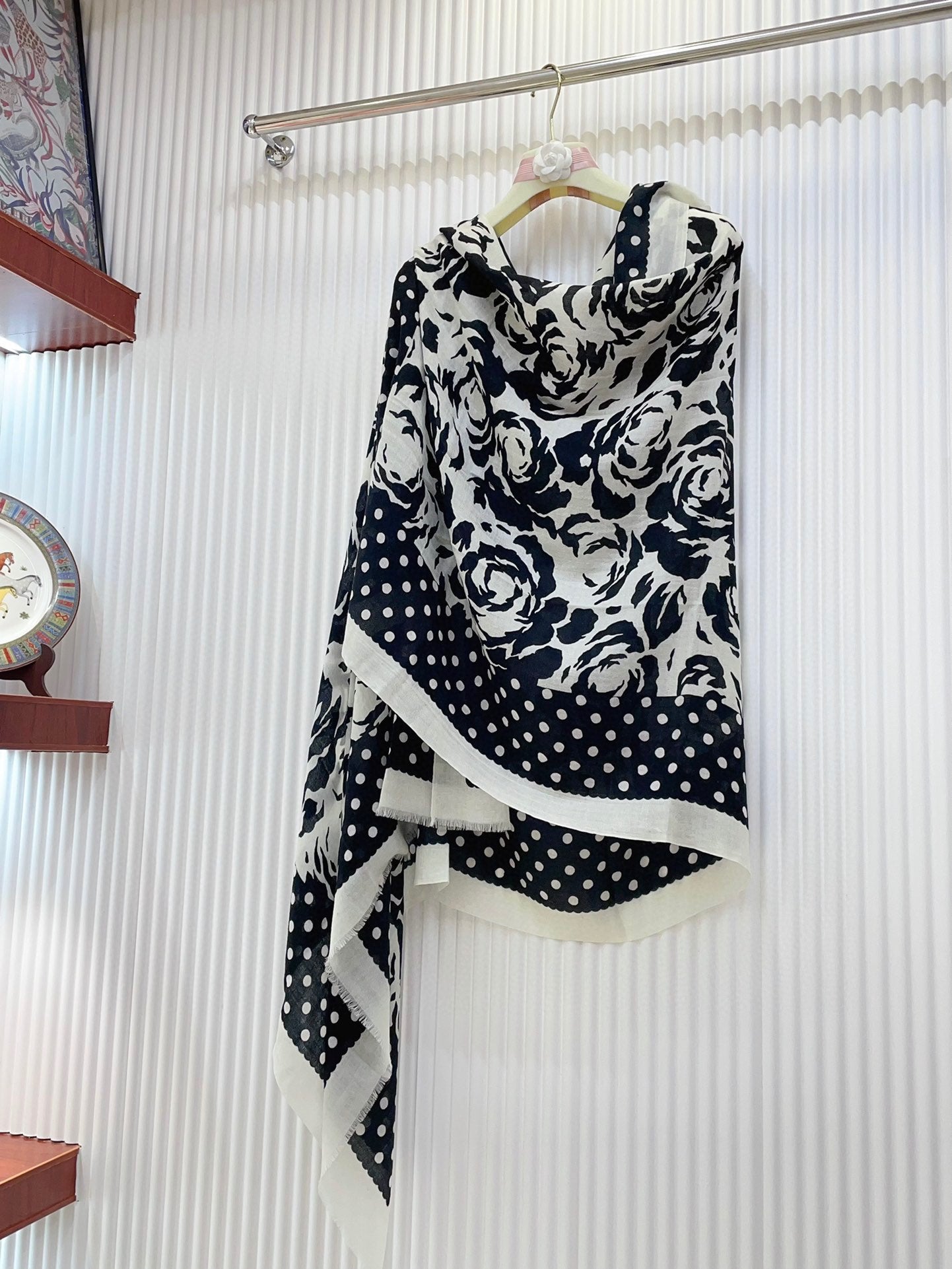 CC Scarf 200 CM In Black Mix White Small Flower Cashmere Silk 351690