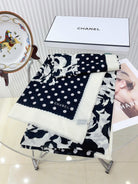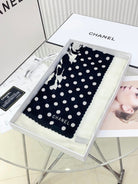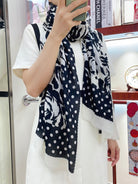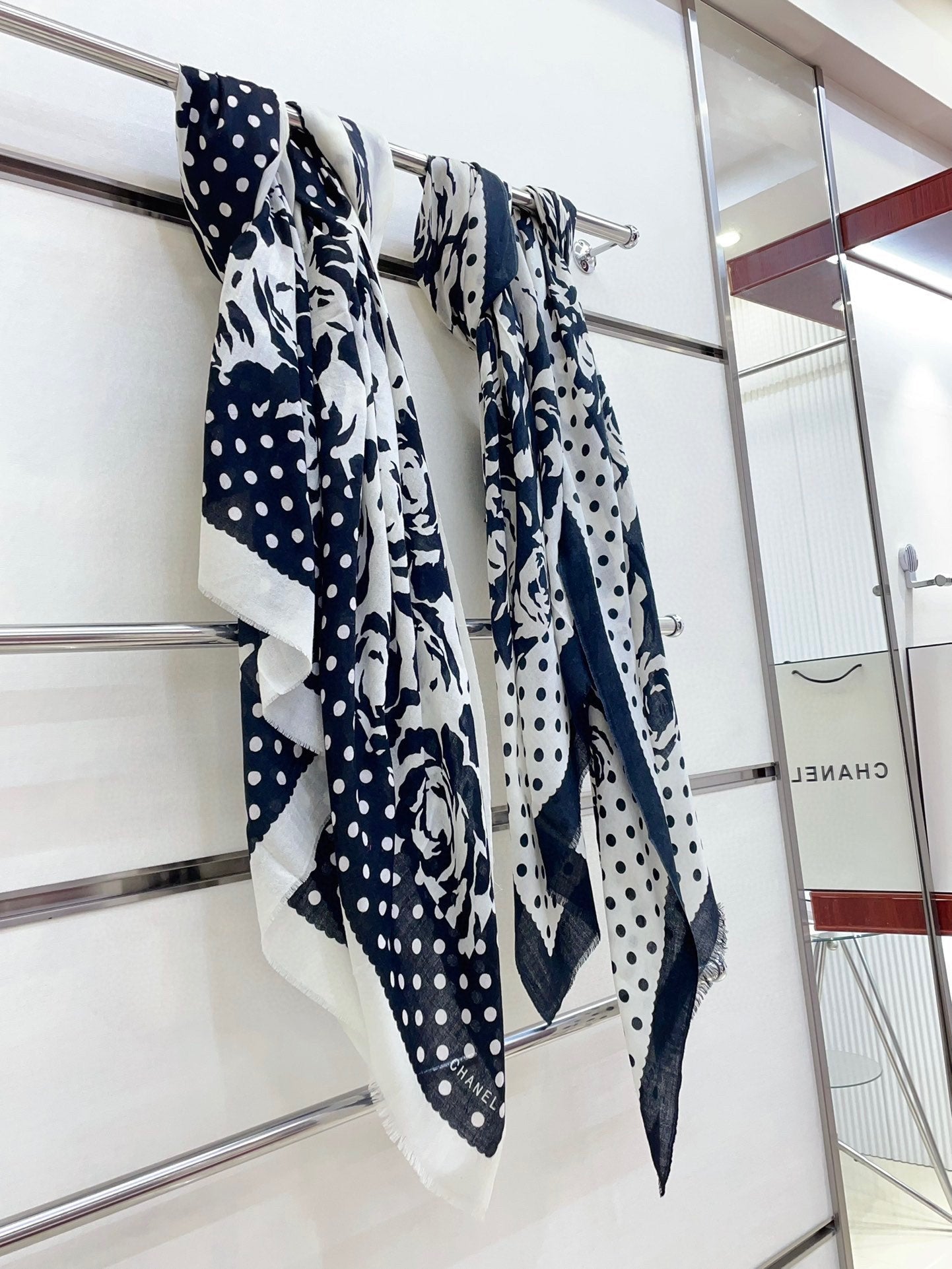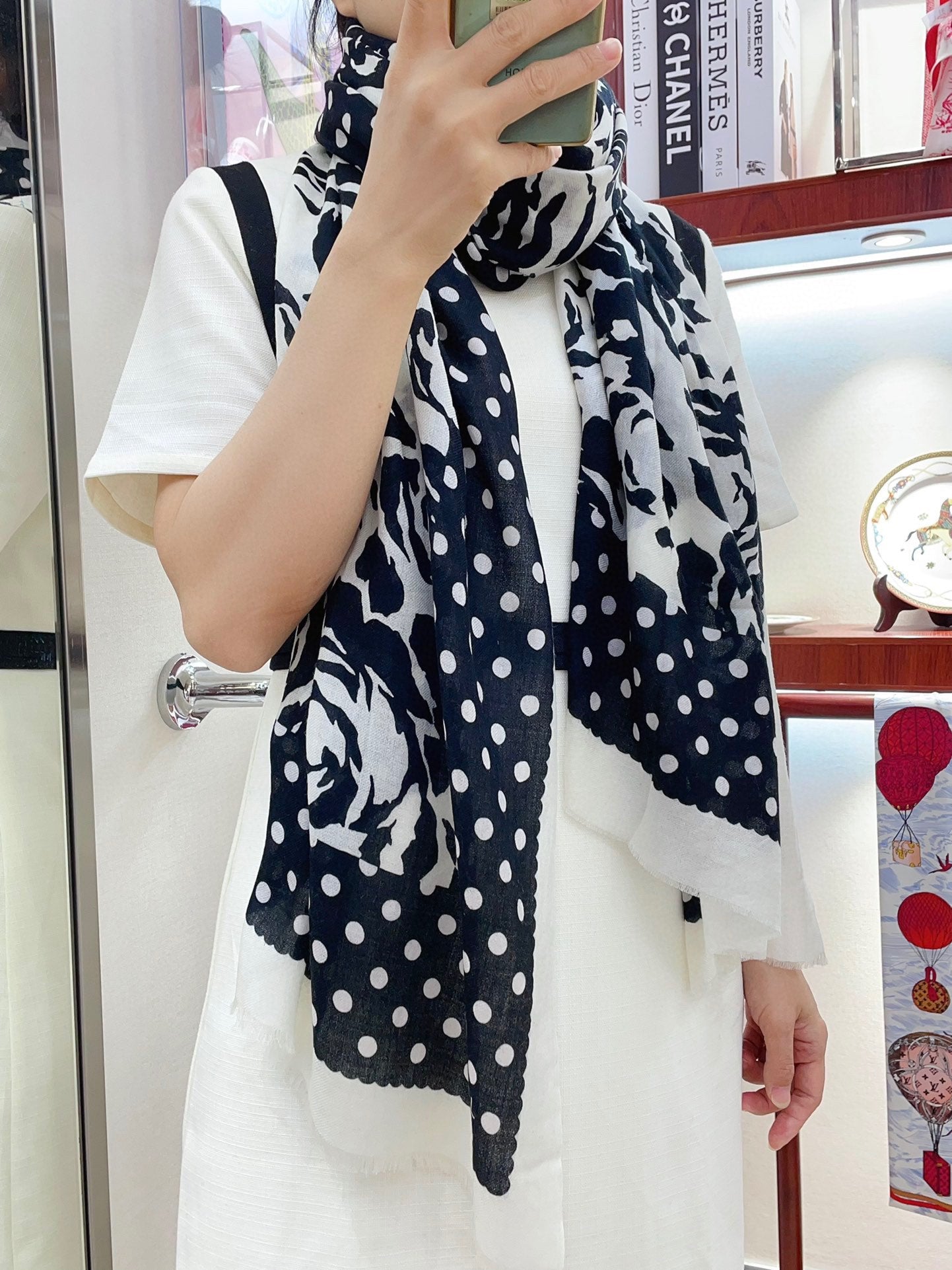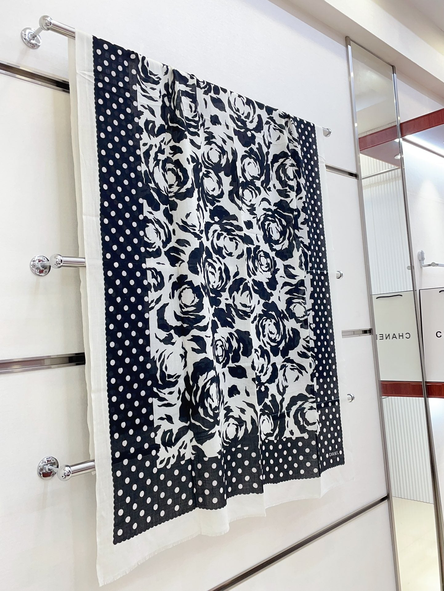 CC Scarf 200 CM In Black Mix White Small Flower Cashmere Silk 351690