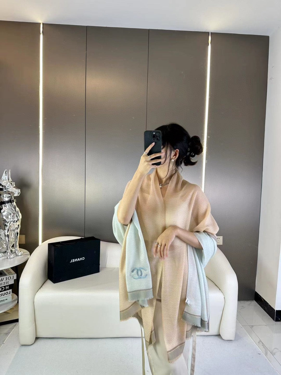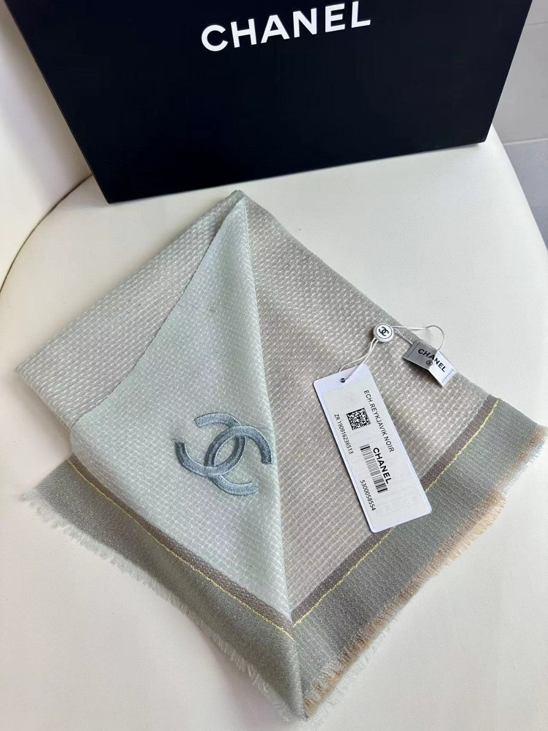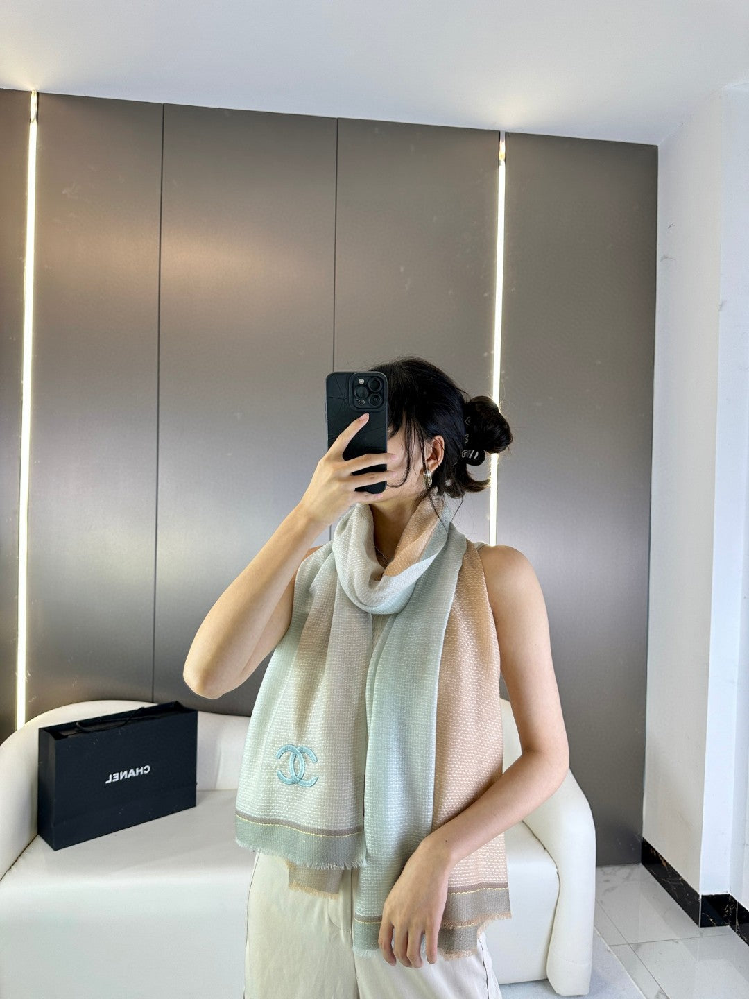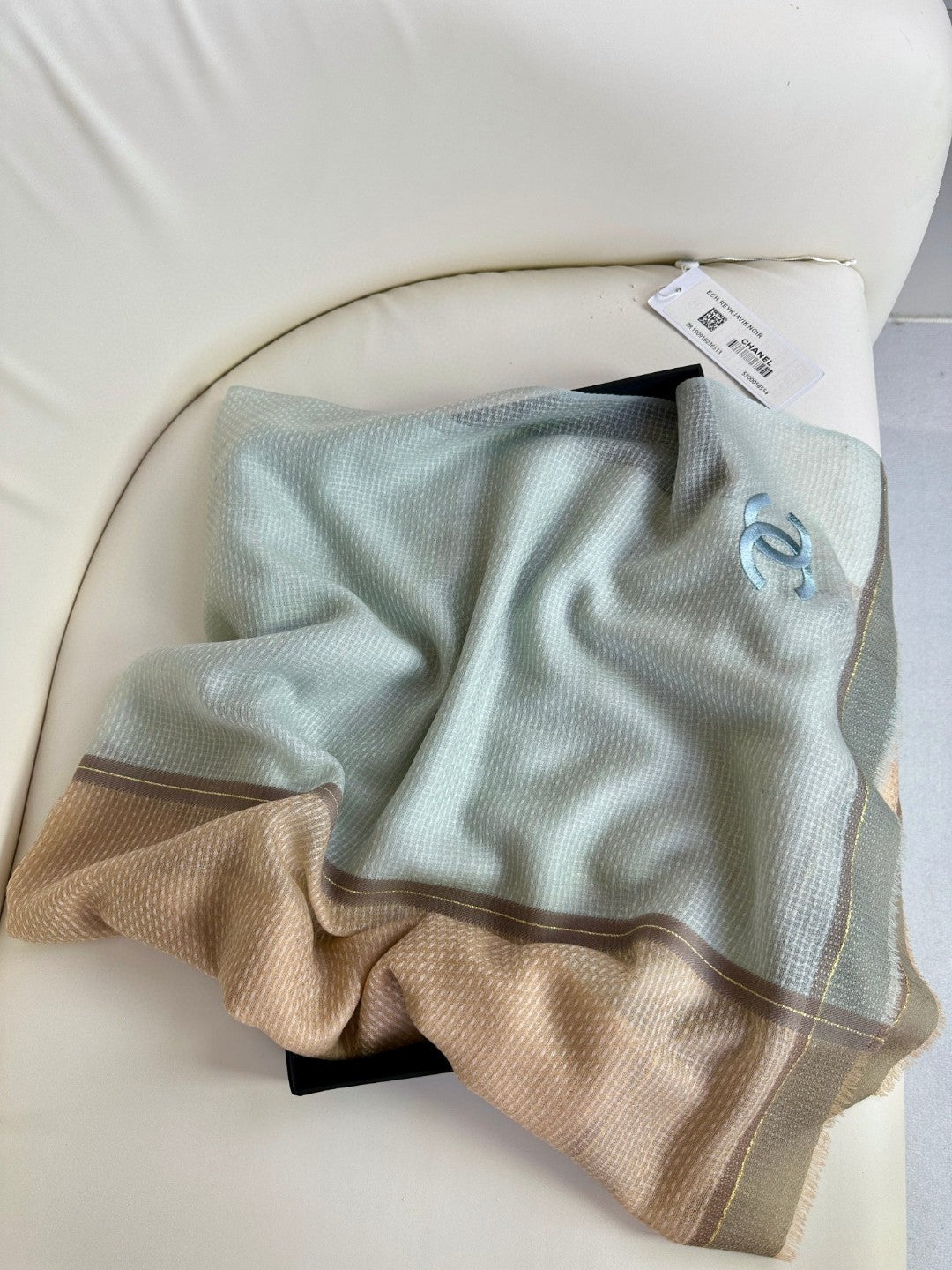 CC Scarf 200 CM In Grey Blue Mix Beige Cashmere Silk 390938