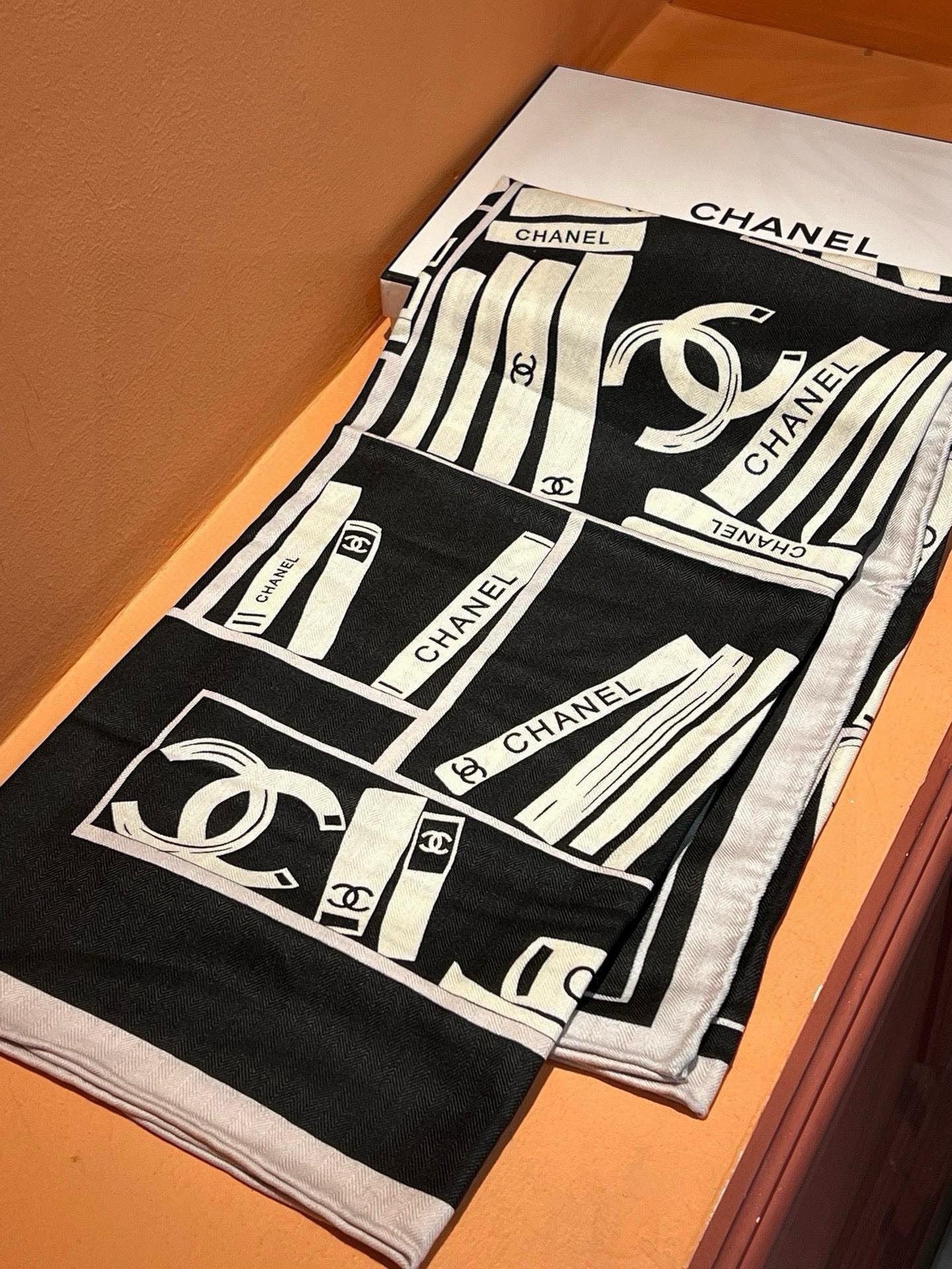 CC Square Scarf 110 CM In Black Mix White Cashmere Silk 221427
