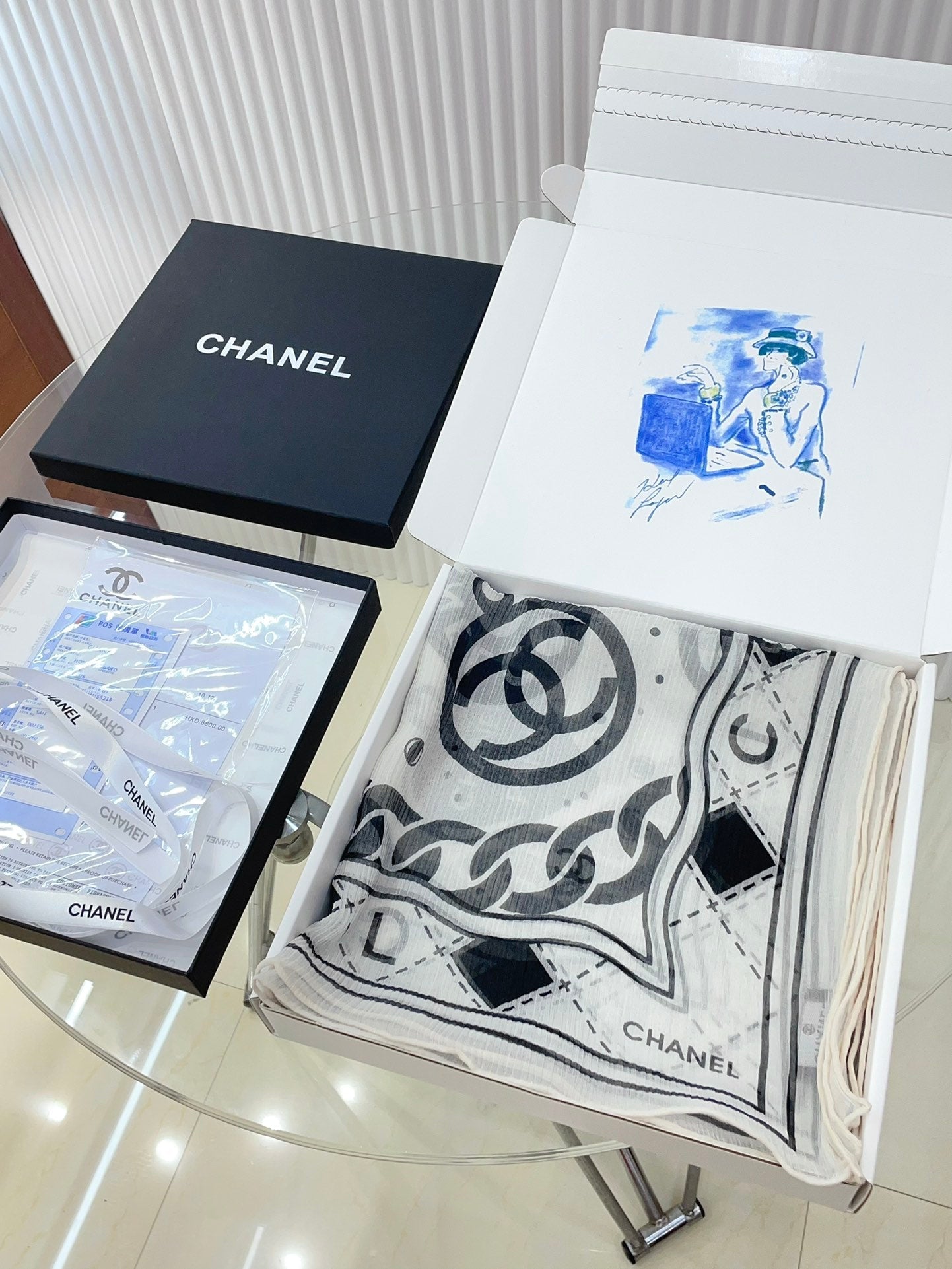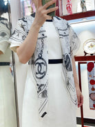 CC Square Scarf 110 CM In White Black Shunyu Qiao Silk 193840
