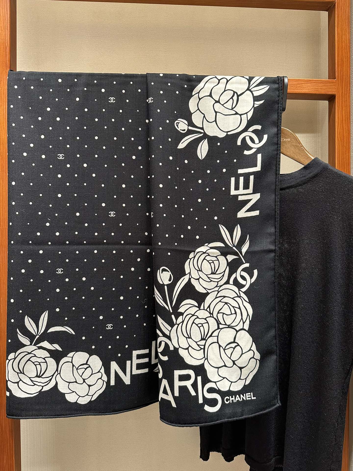 CC Square Scarf 140 CM In Black Mix White Cashmere Silk 383803