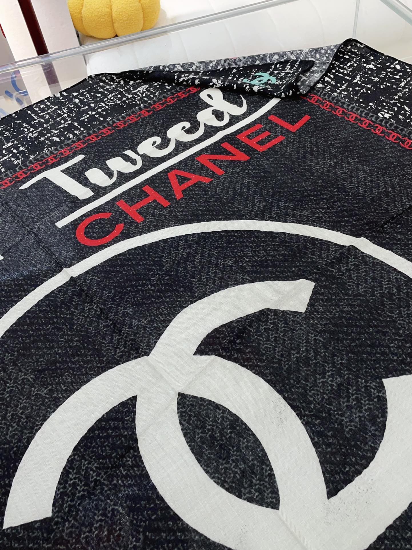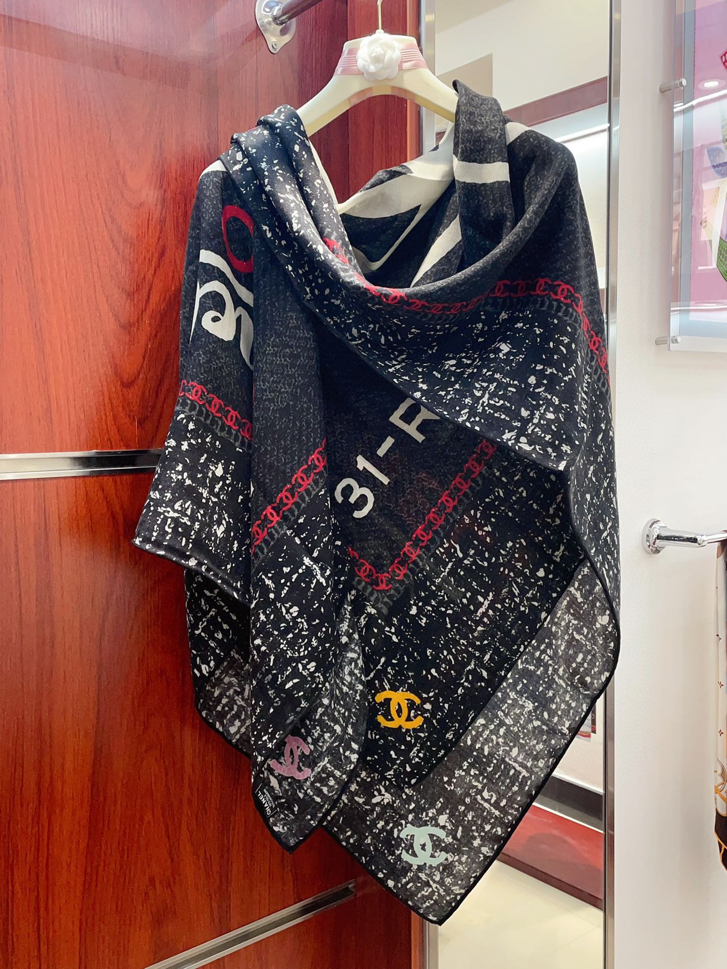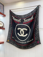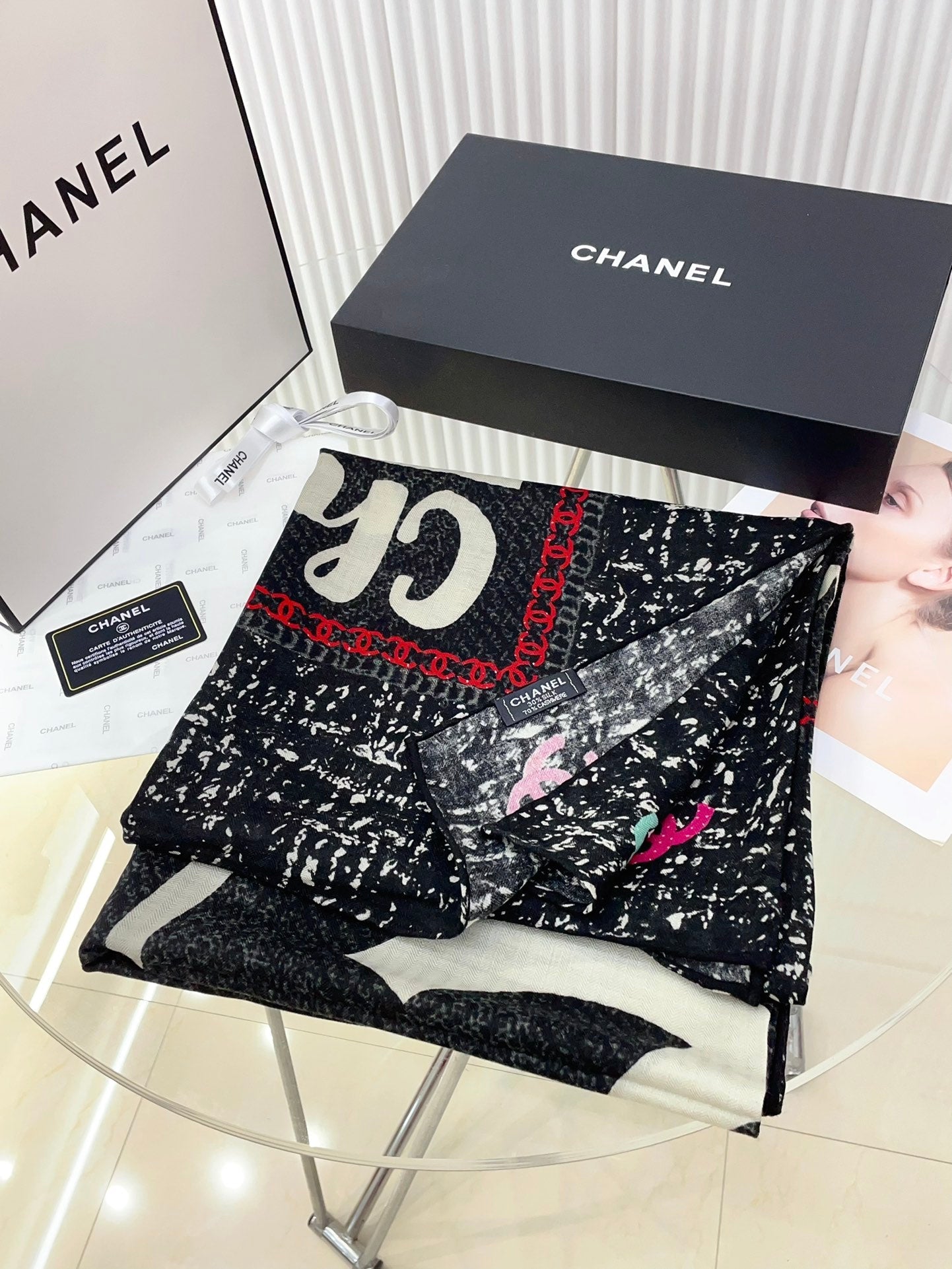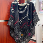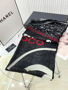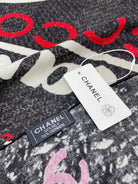CC Square Scarf 140 CM In Black Mix White Red Cashmere Silk 252308