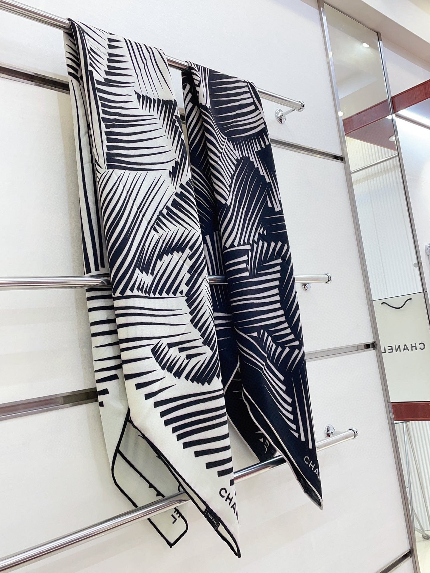 CC Square Scarf 140 CM In Black White Cashmere Mix Silk 382617