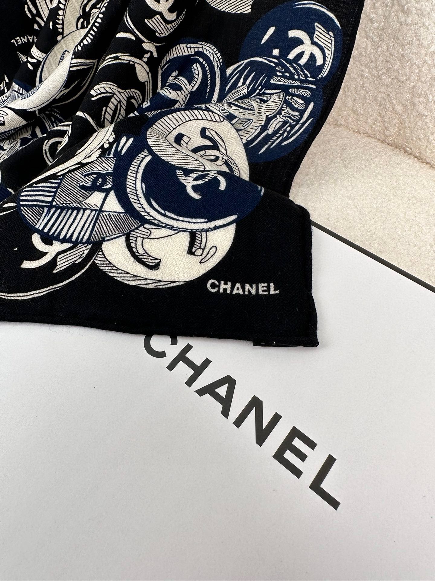 CC Square Scarf 70 CM In Black Colorful Cashmere And Silk 399802