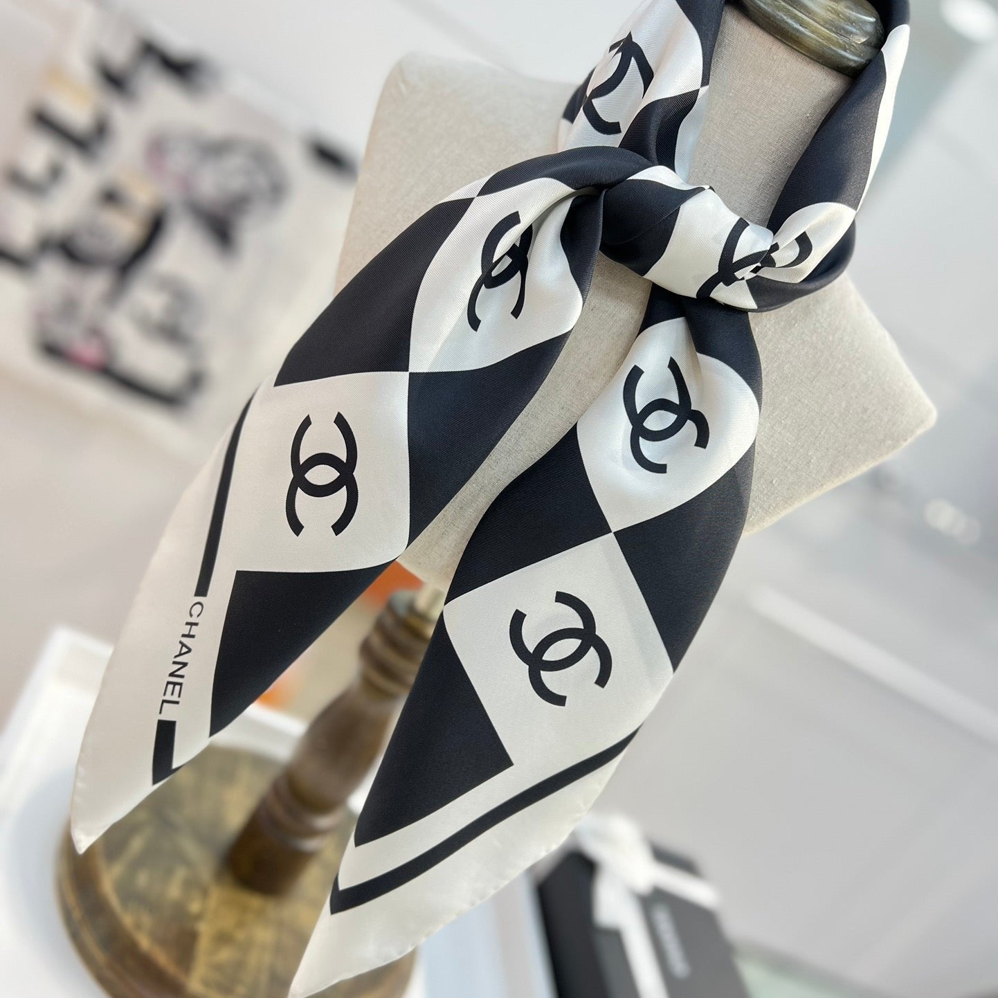 CC Square Scarf 90 CM In Black And White Plaid Silk Twill 288742