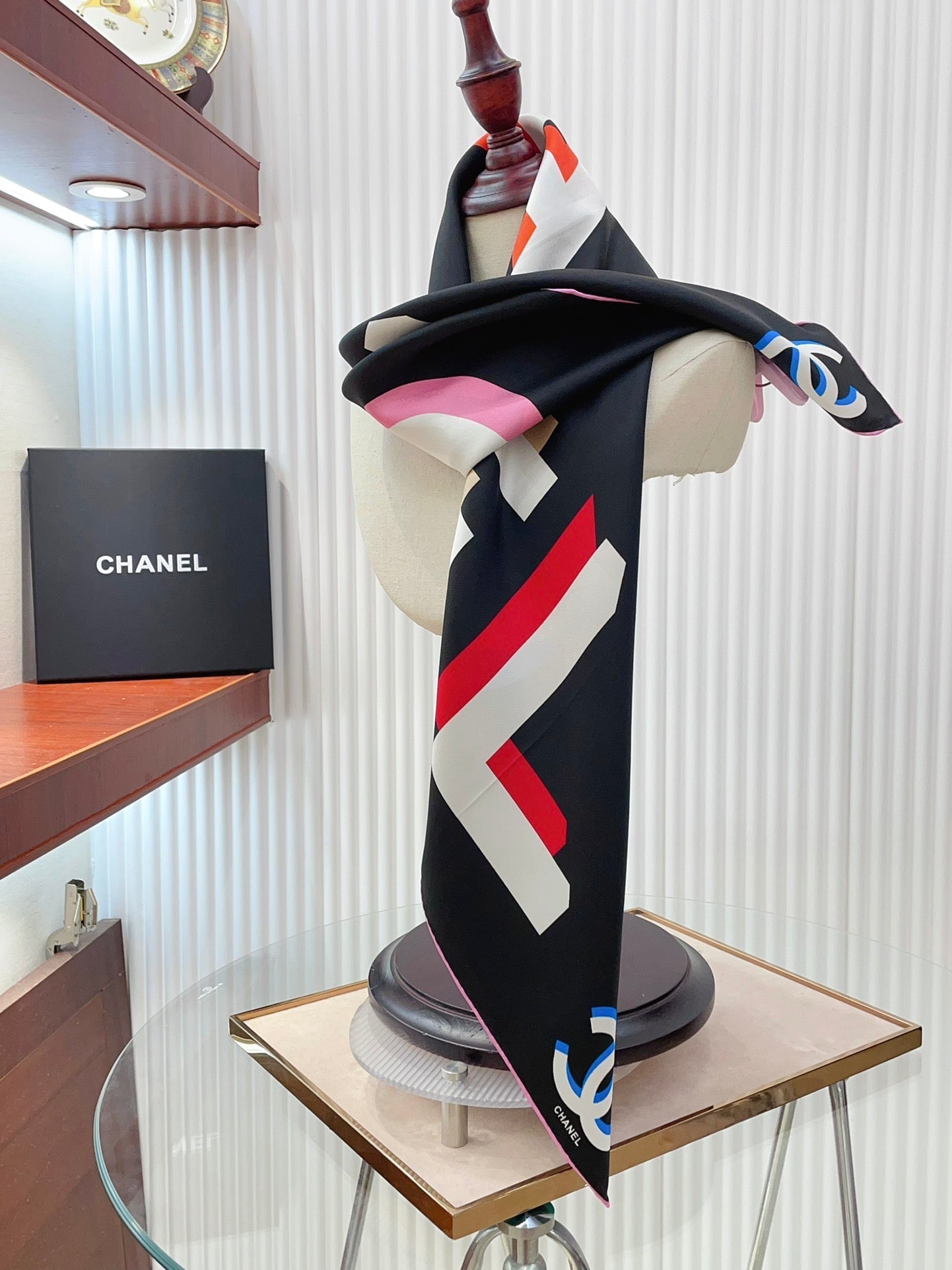 CC Square Scarf 90 CM In Black Colorful Silk Twill 206468