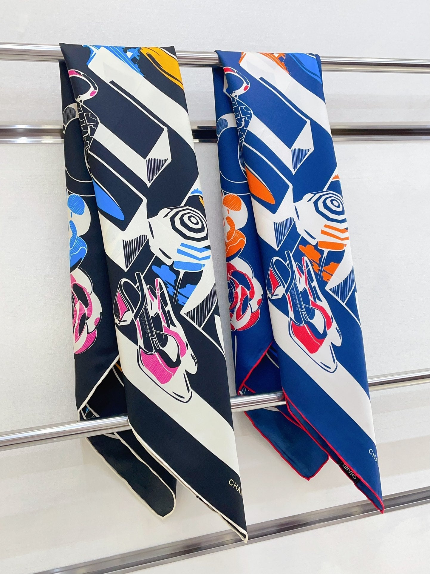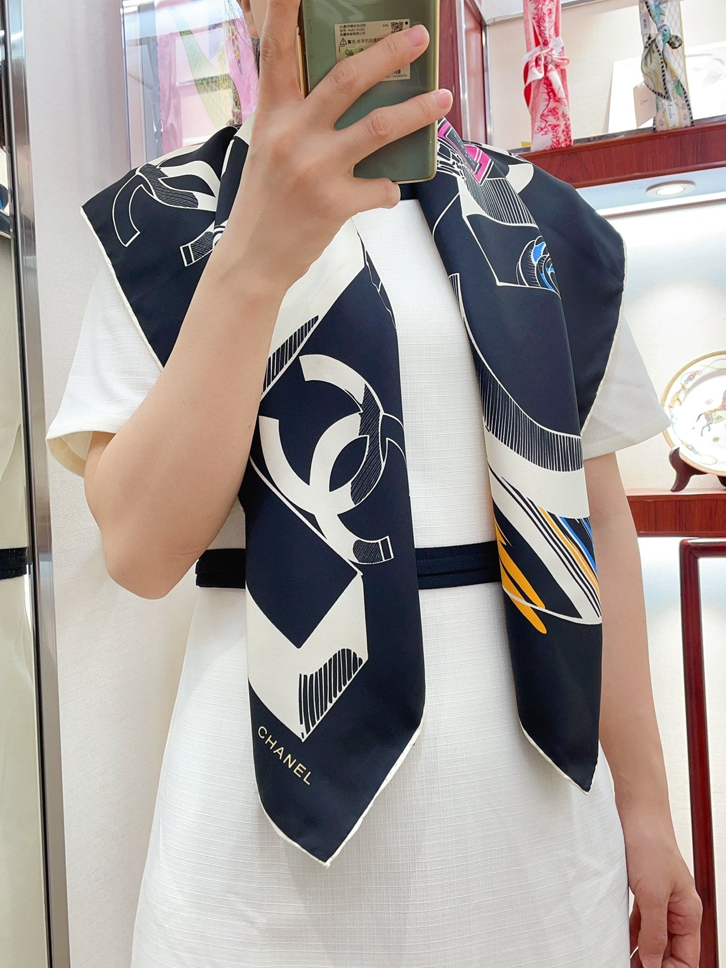 CC Square Scarf 90 CM In Black Colorful Silk Twill 211096