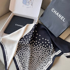 CC Square Scarf 90 CM In White Mix Black Logo Print Silk Twill 288696