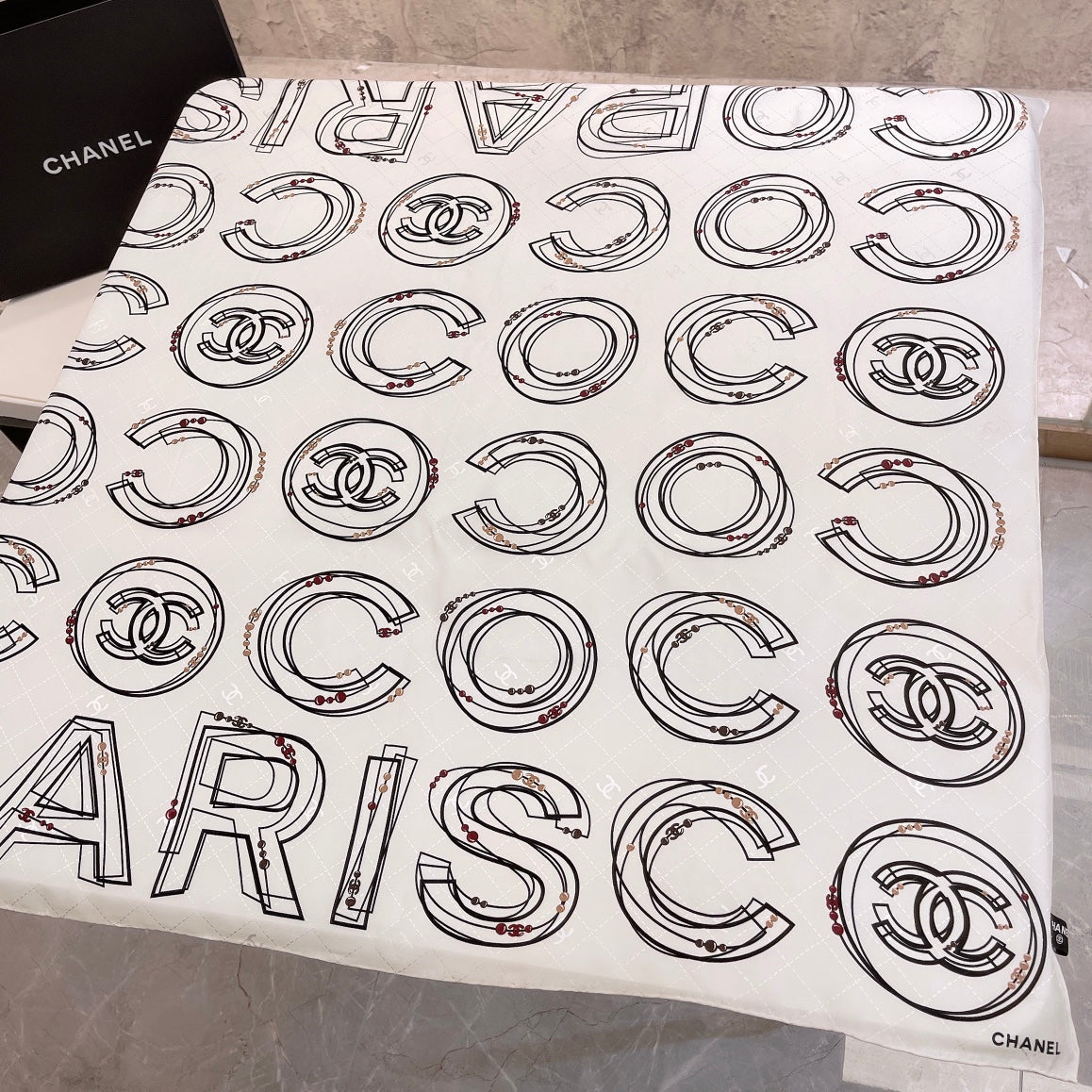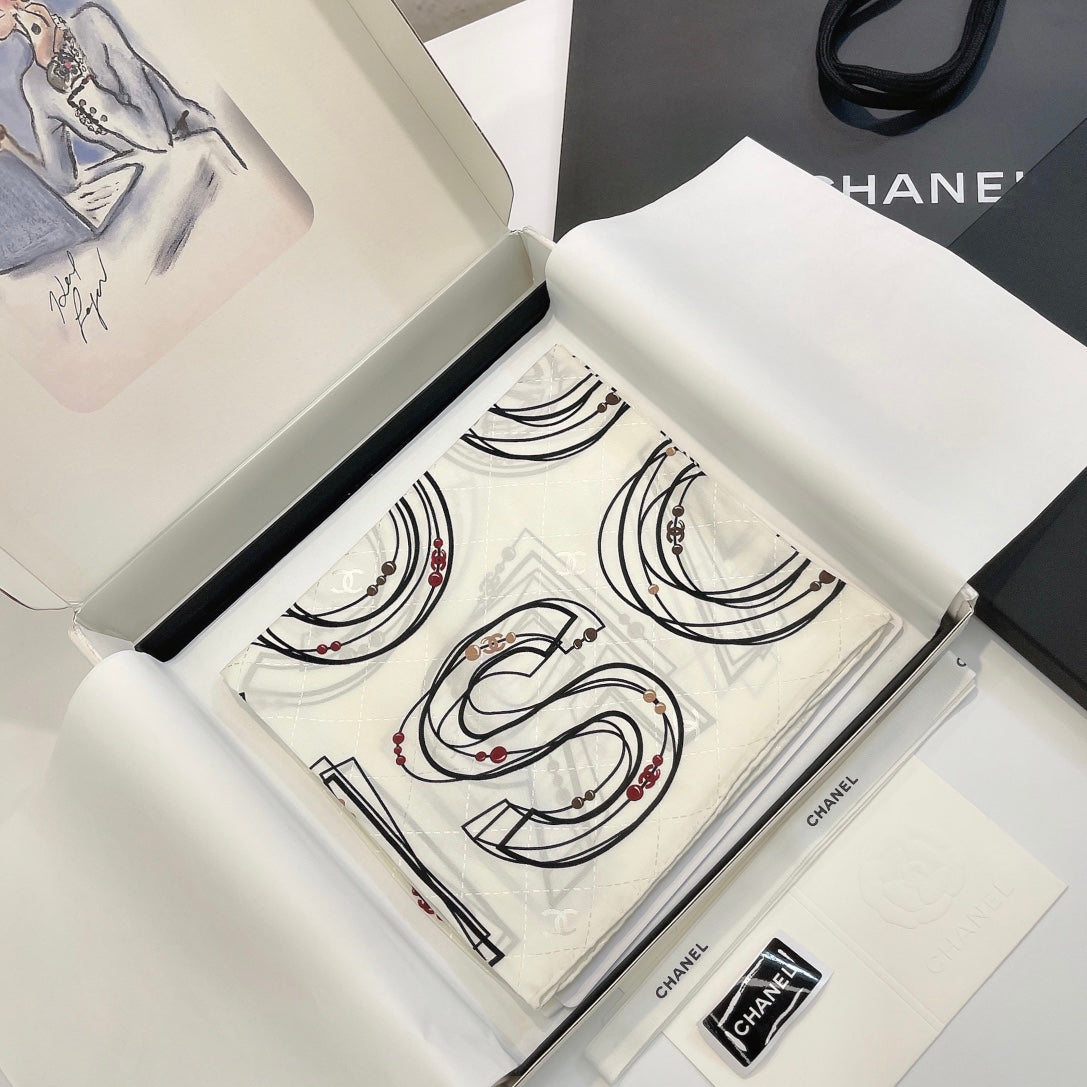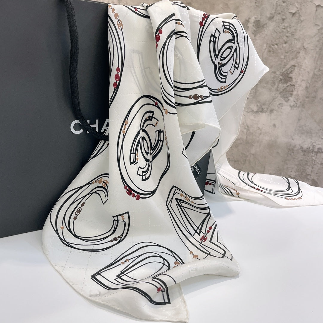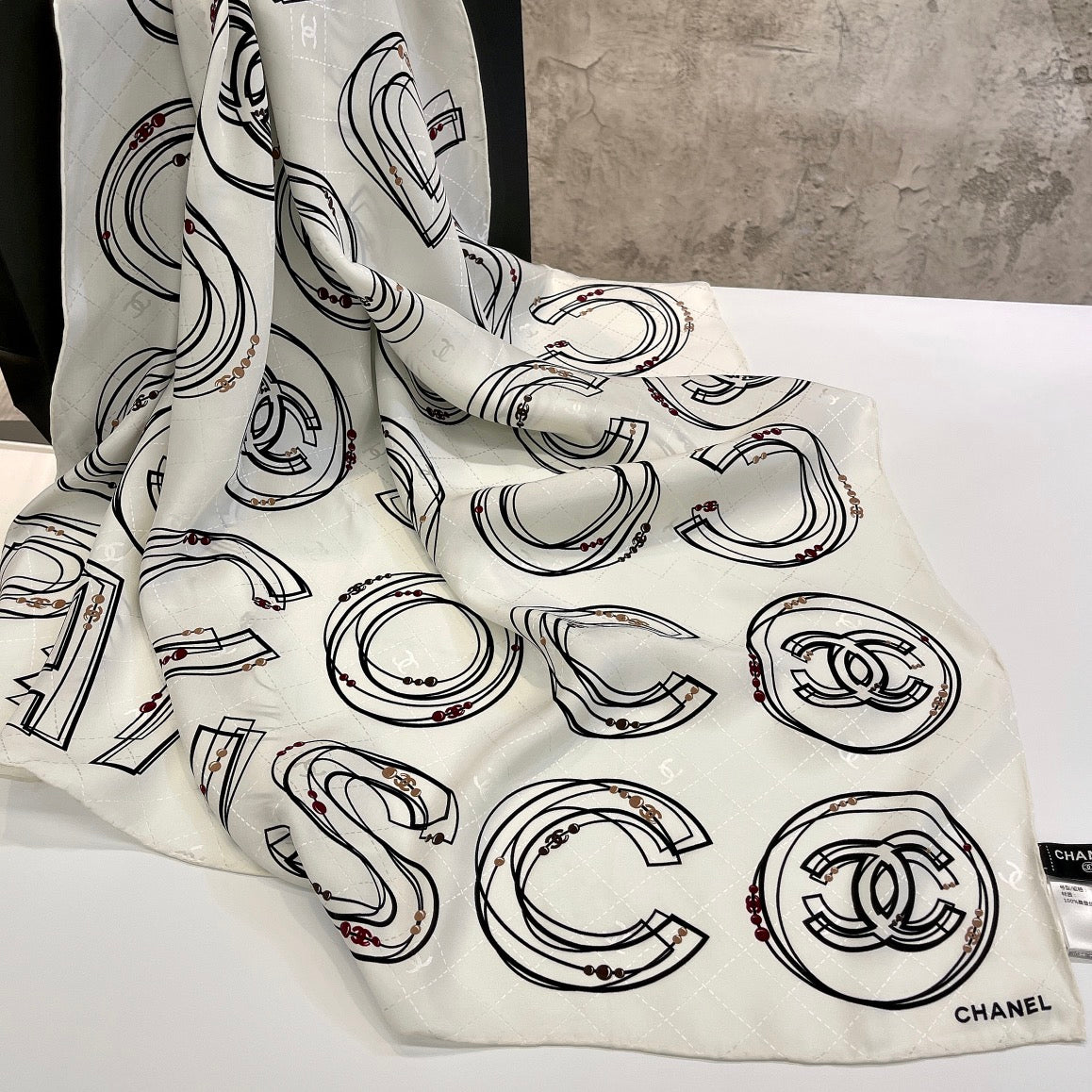 CC Square Scarf 90 CM In White Mix Black Silk 288721