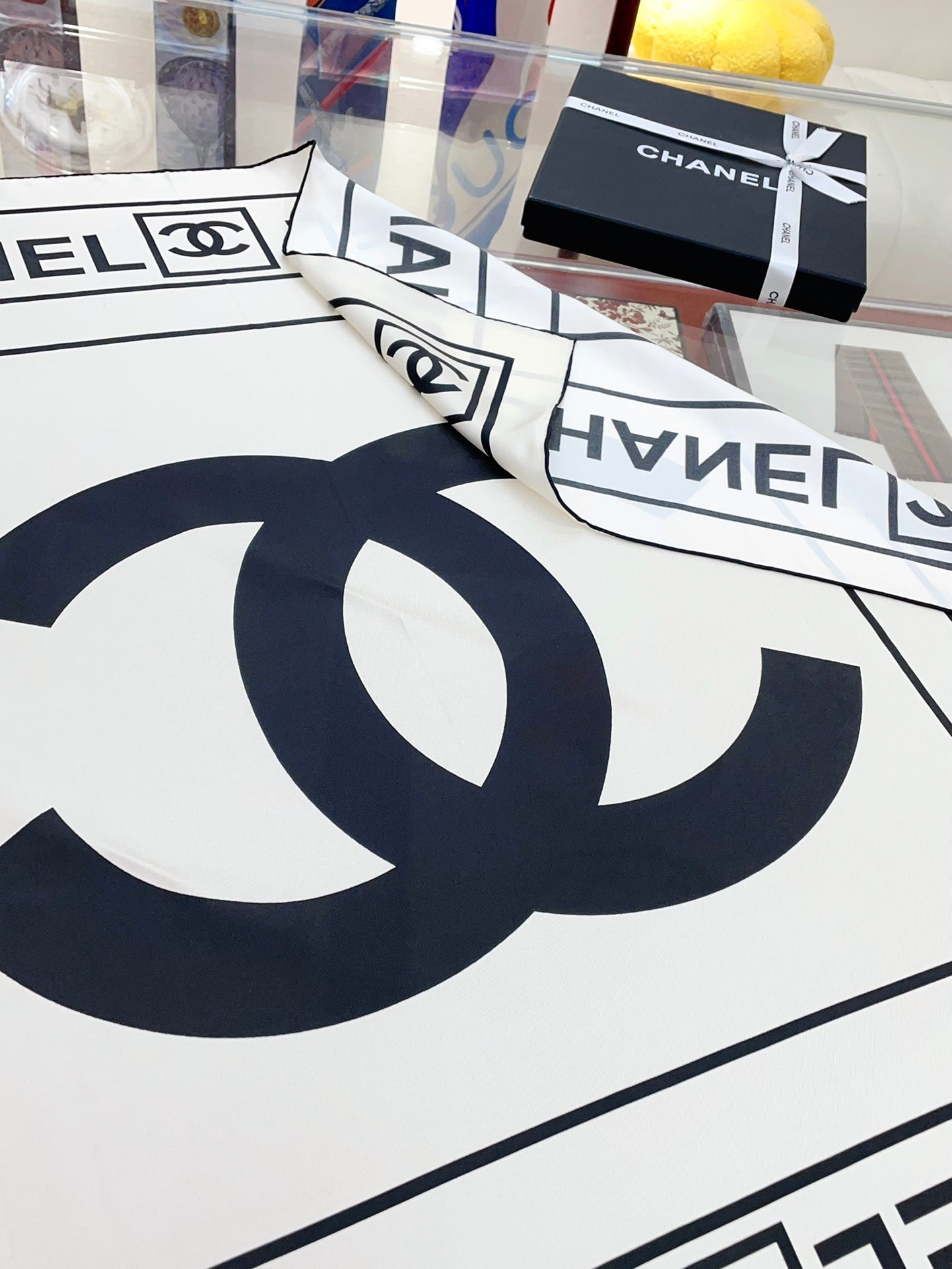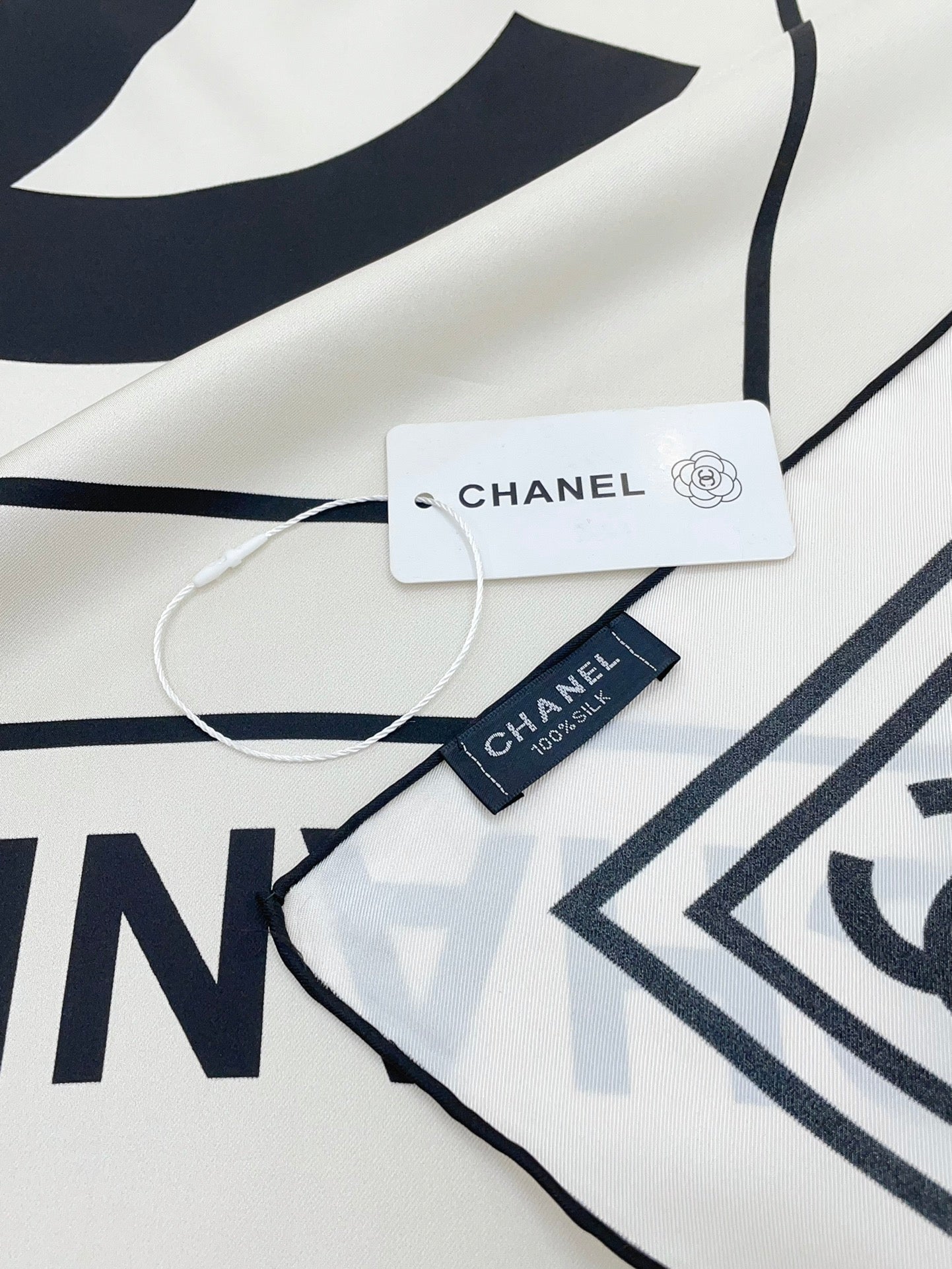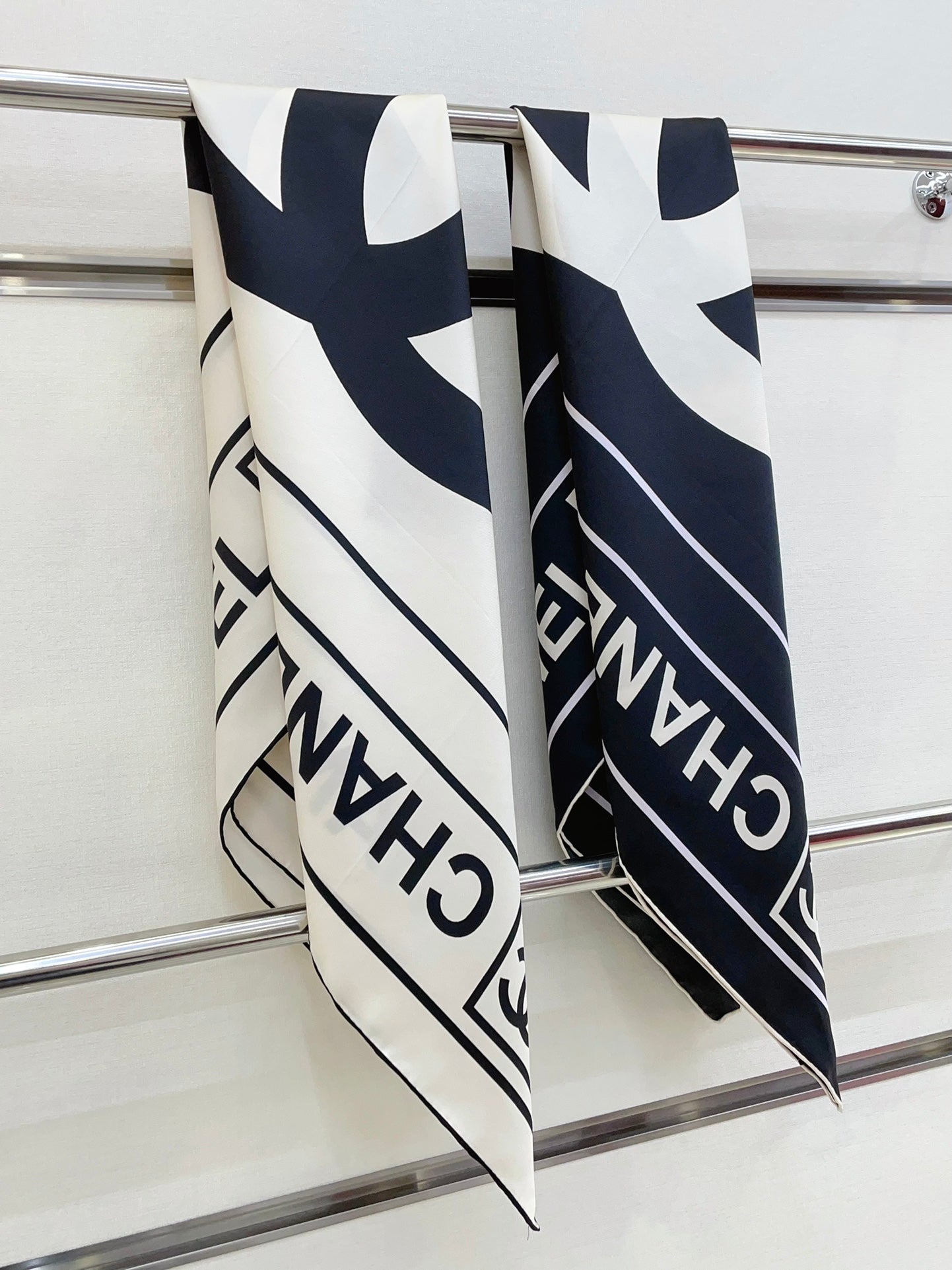 CC Square Scarf 90 CM In White Mix Black Silk Twill 167960