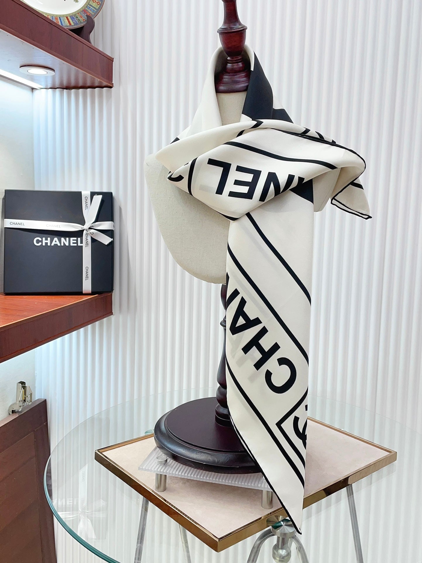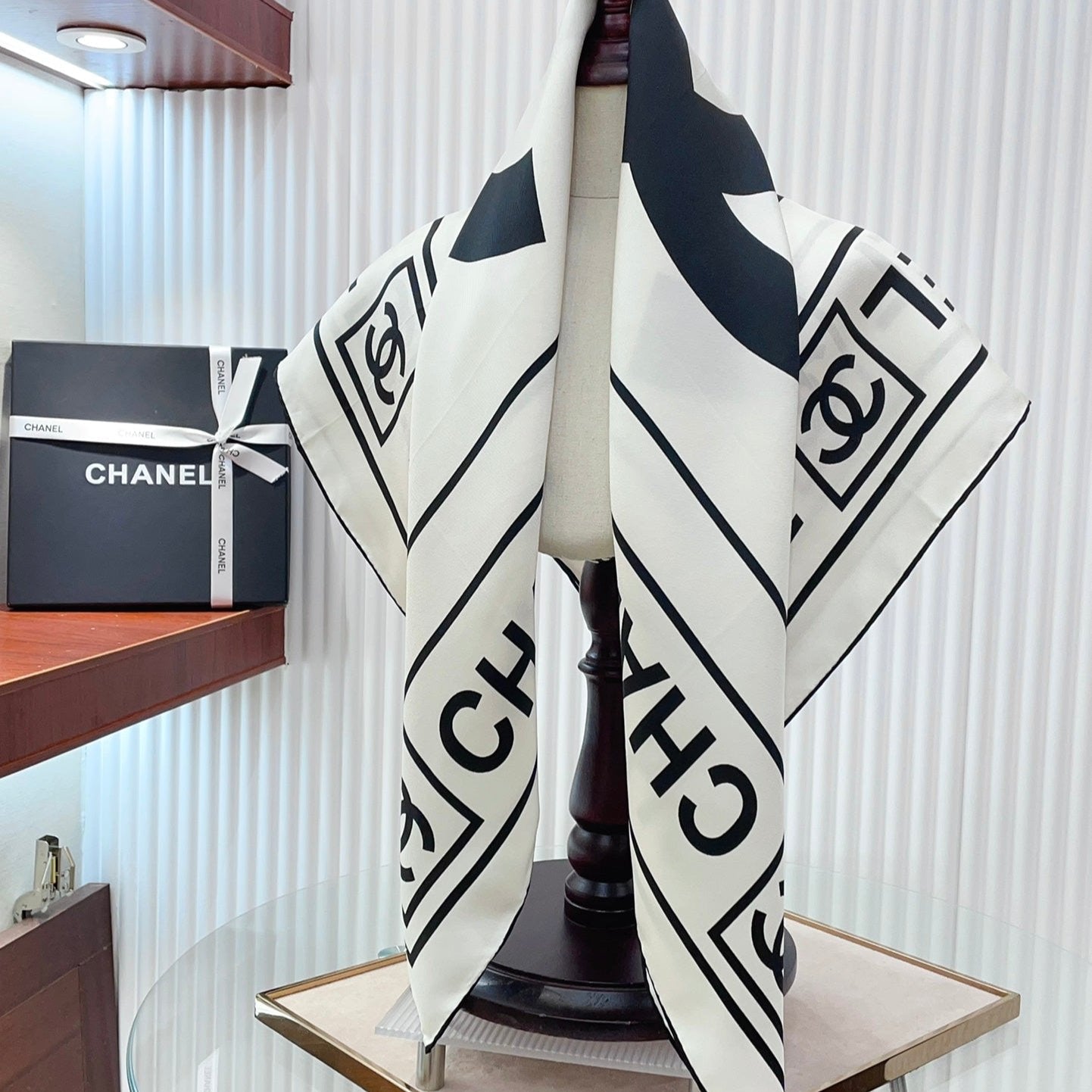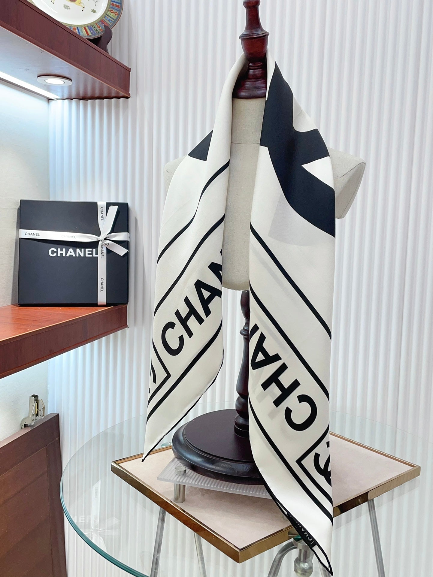 CC Square Scarf 90 CM In White Mix Black Silk Twill 167960