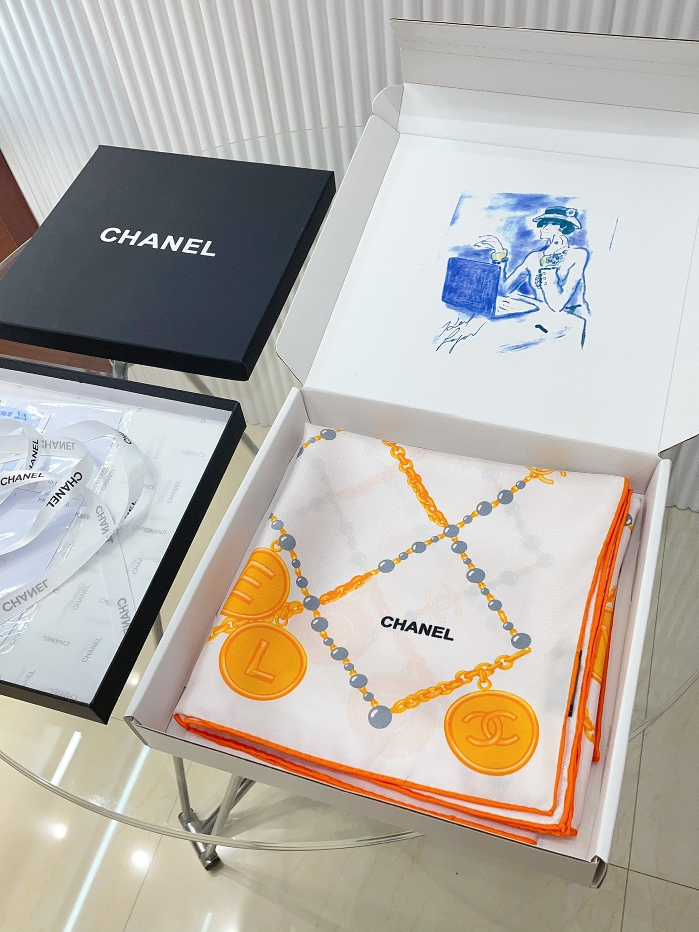 CC Square Scarf 90 CM In White Mix Yellow Silk Twill 176345