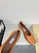 ALAIA BALLET FLATS IN COPPER BROWN CALFSKIN