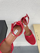 ALAIA HIGH FISHNET 9 CM PUMPS IN CHERRY RED MESH