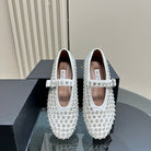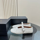 Alaia Strass Suede Ballet Flats In White 999322
