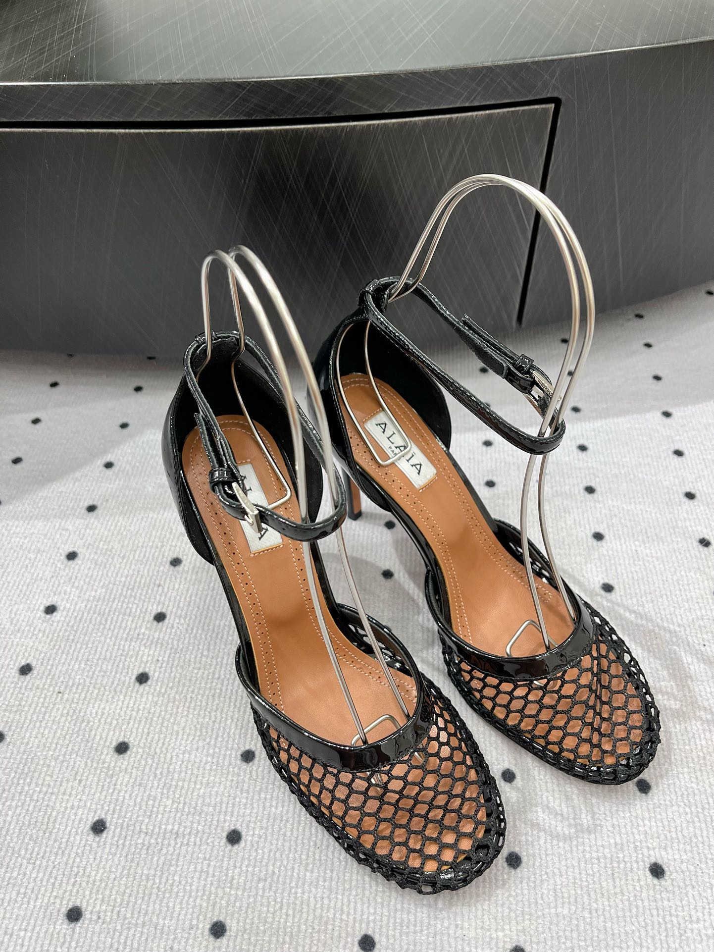 Alaila High Fishnet Pumps 90mm In Black Mesh Fabric 954848