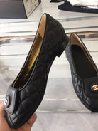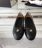 ballet flat black quilted gold cc lock