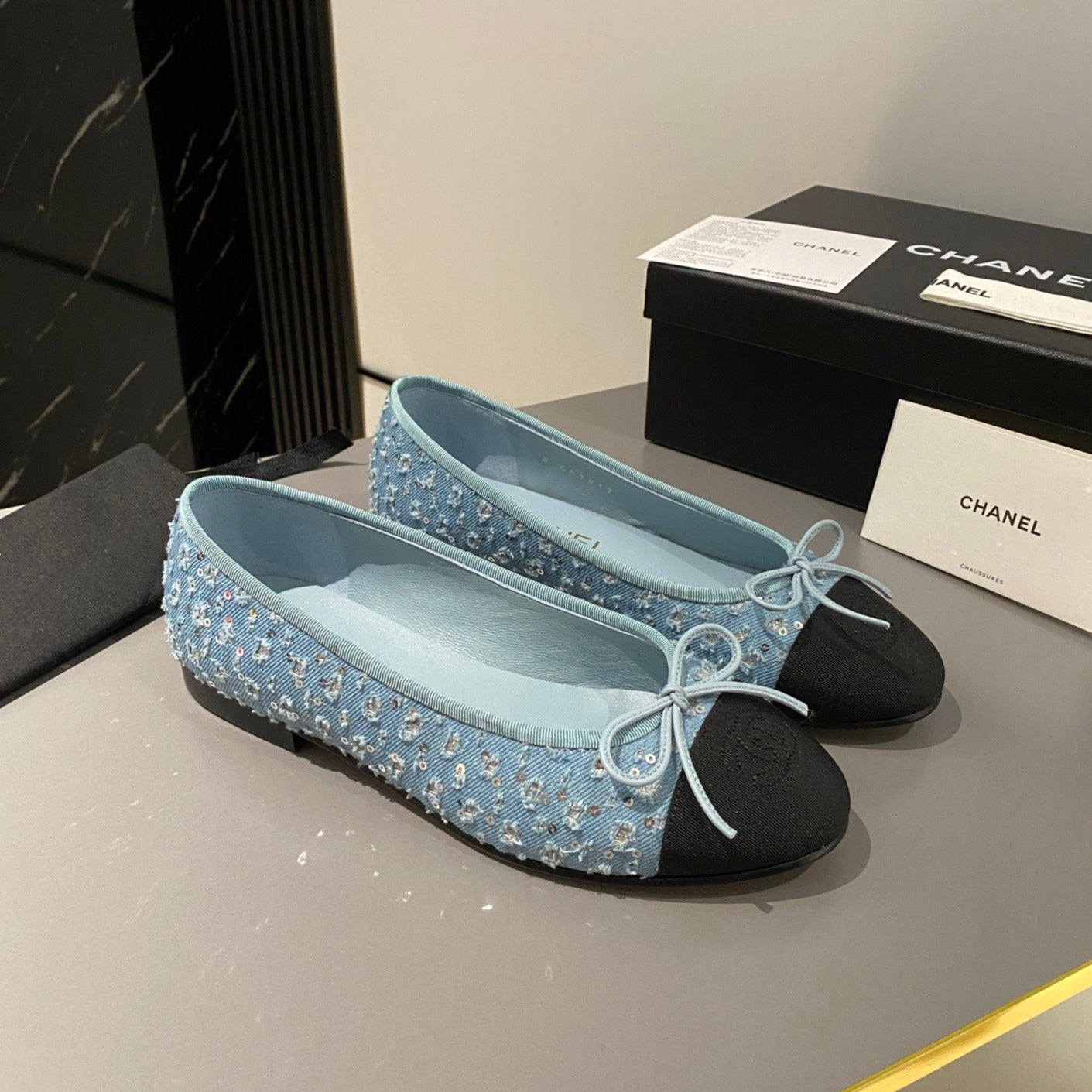 ballet flat cloud blue glitter sequins canvas black grosgrain