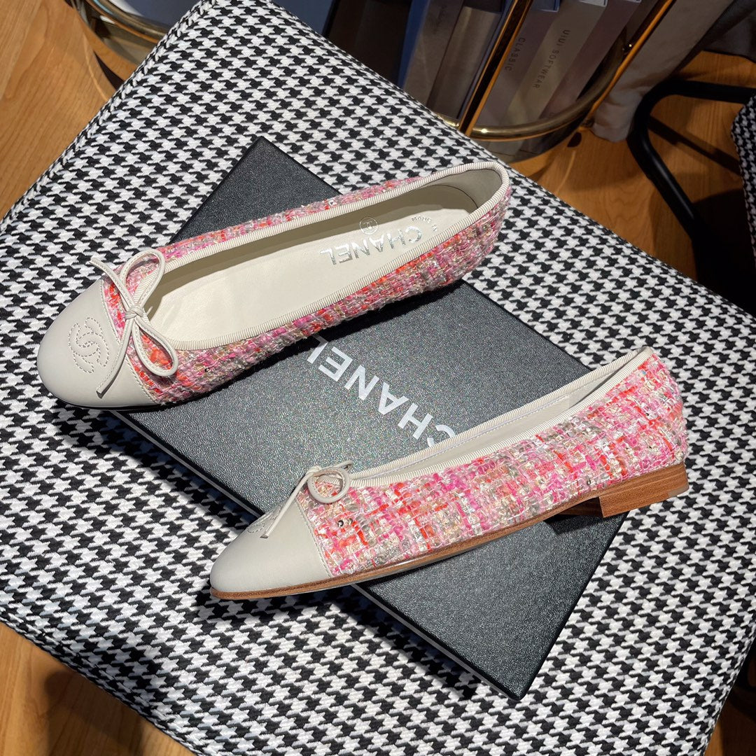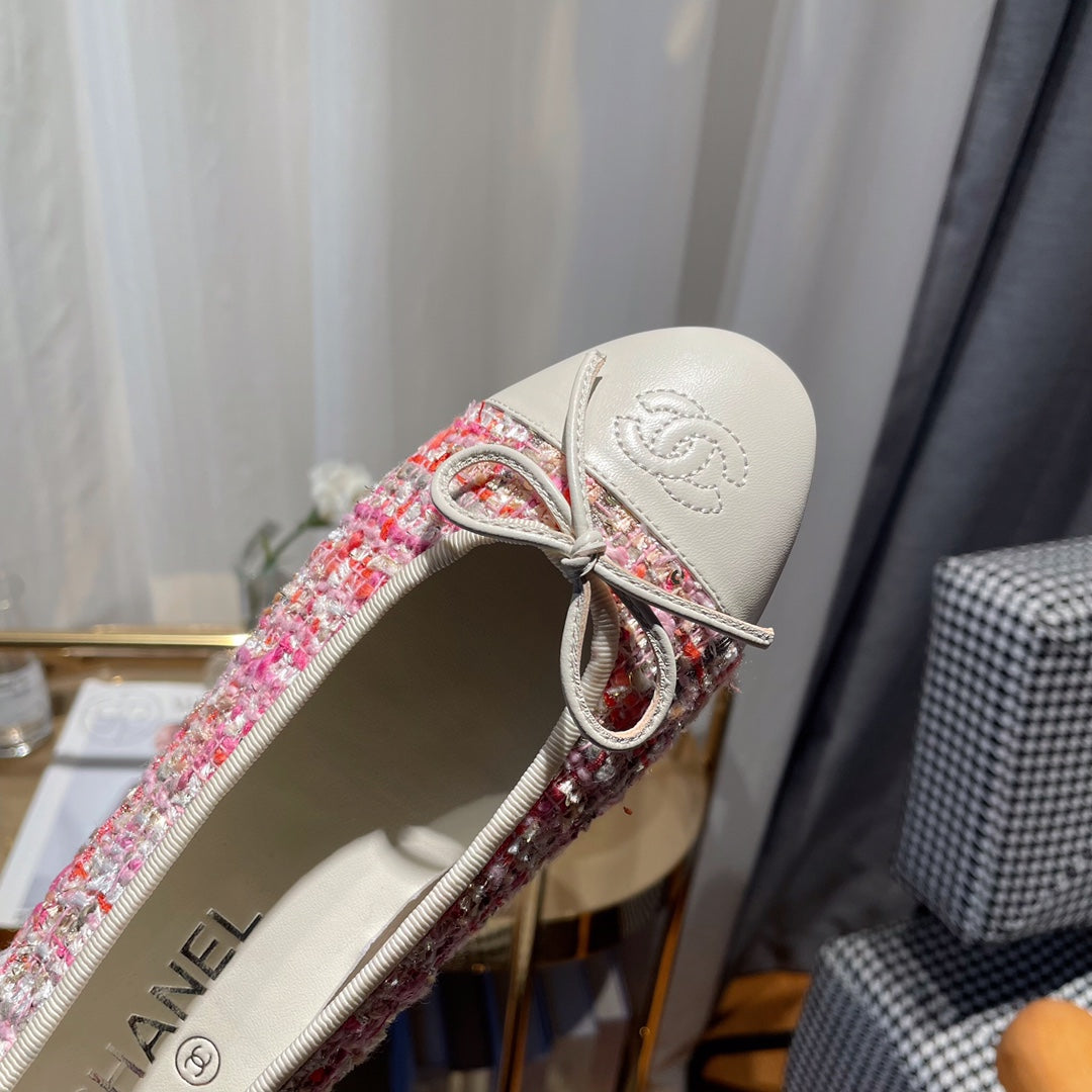 ballet flat red pink tweed white calfskin