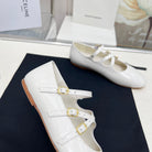 BALLET FLAT WITH CROSSOVER STRAP IN WHITE LAMBSKIN