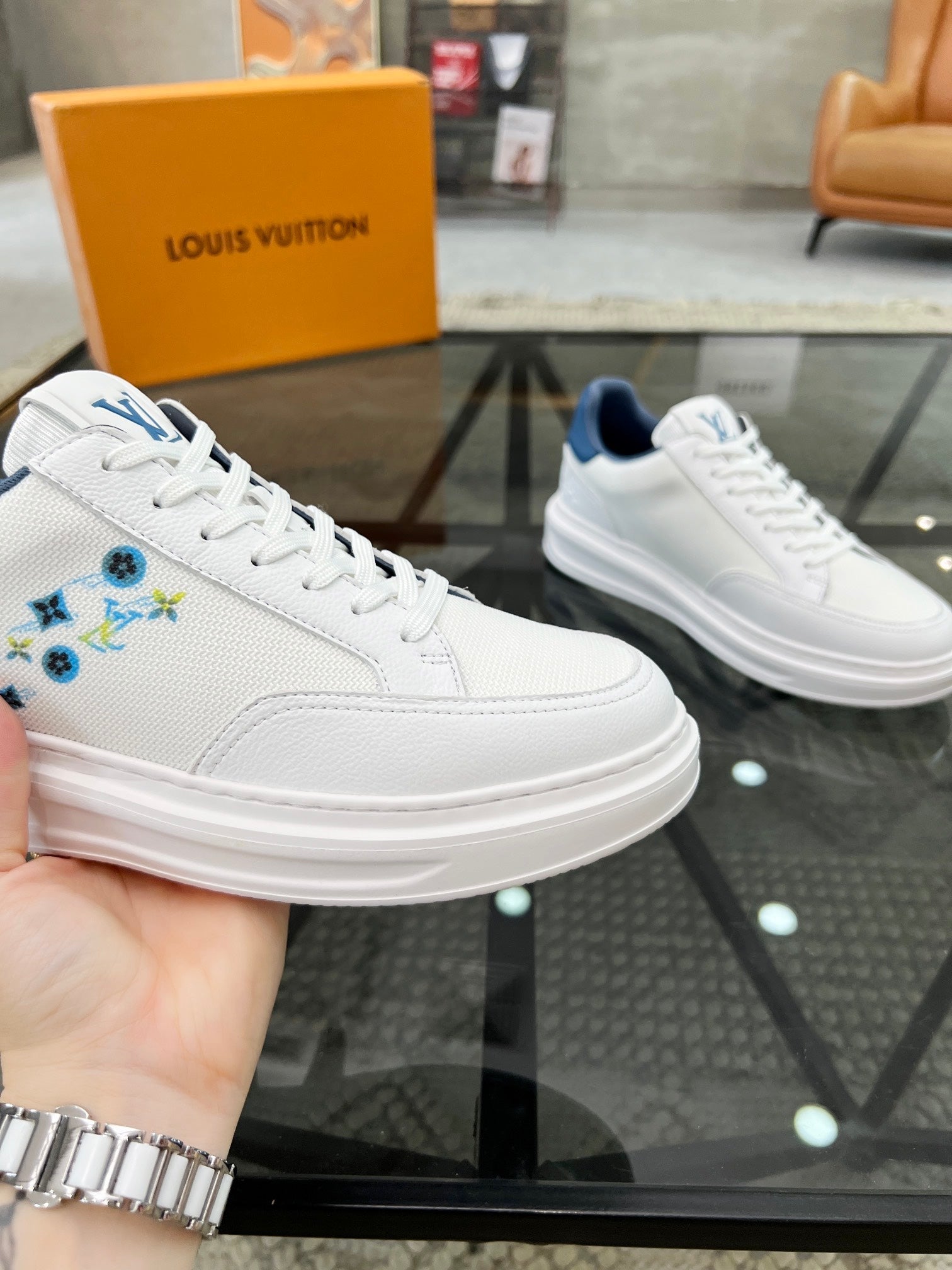 • Color: White mix Denim Blue