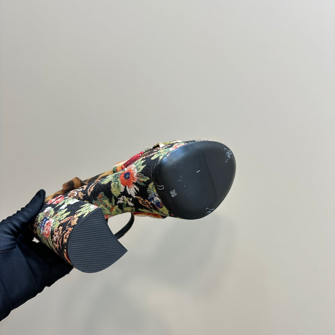 BIANCA PLATFORM SANDALS IN FLOWER PATTERN CANVAS