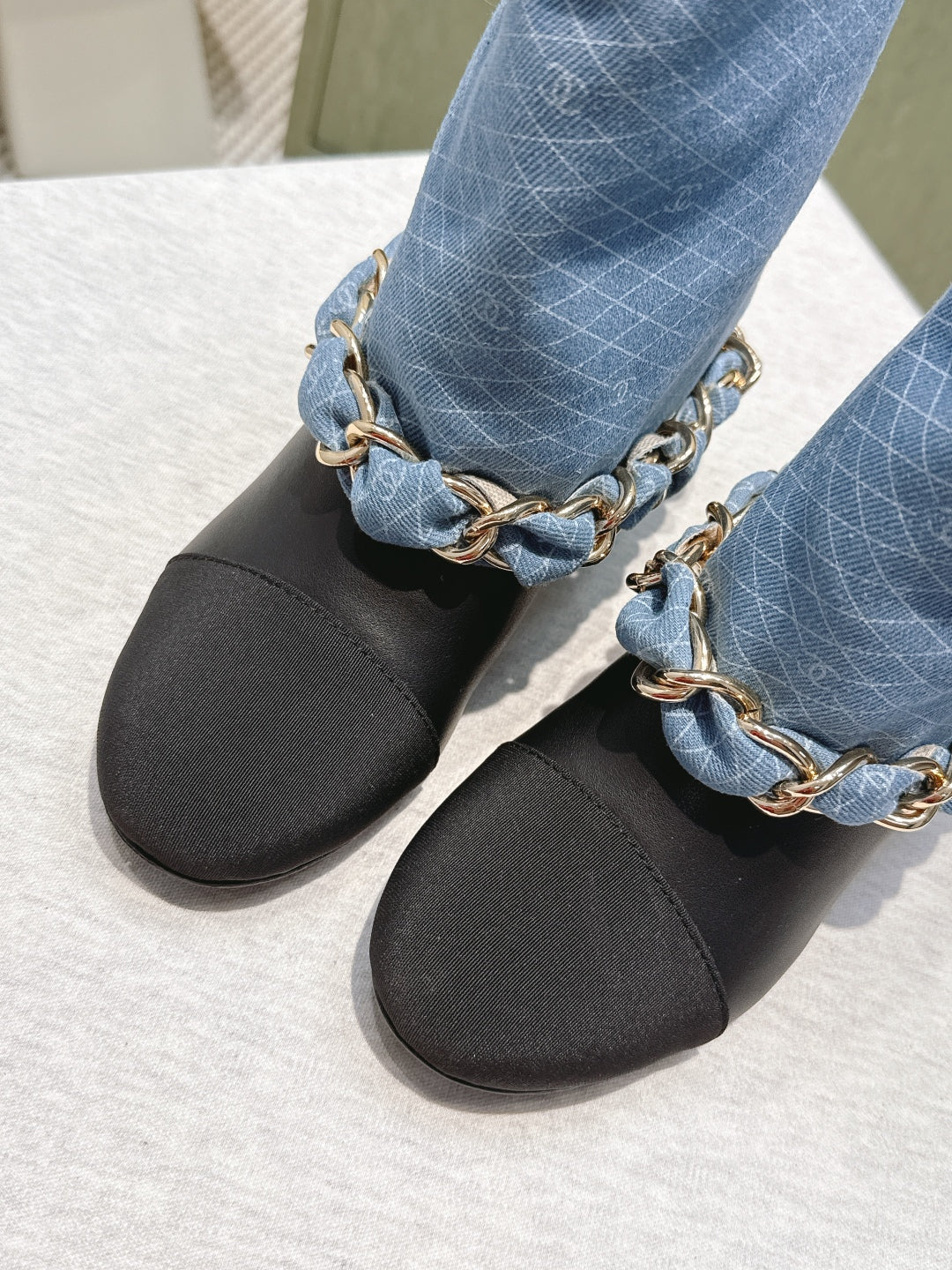 CC 25 Short Boot Blue Black Denim Fabric Calfskin 515265