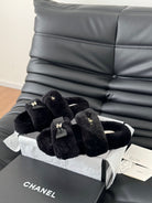 CC DAD SANDAL MULE IN BLACK FLEECE WITH GOLD HARDWARE