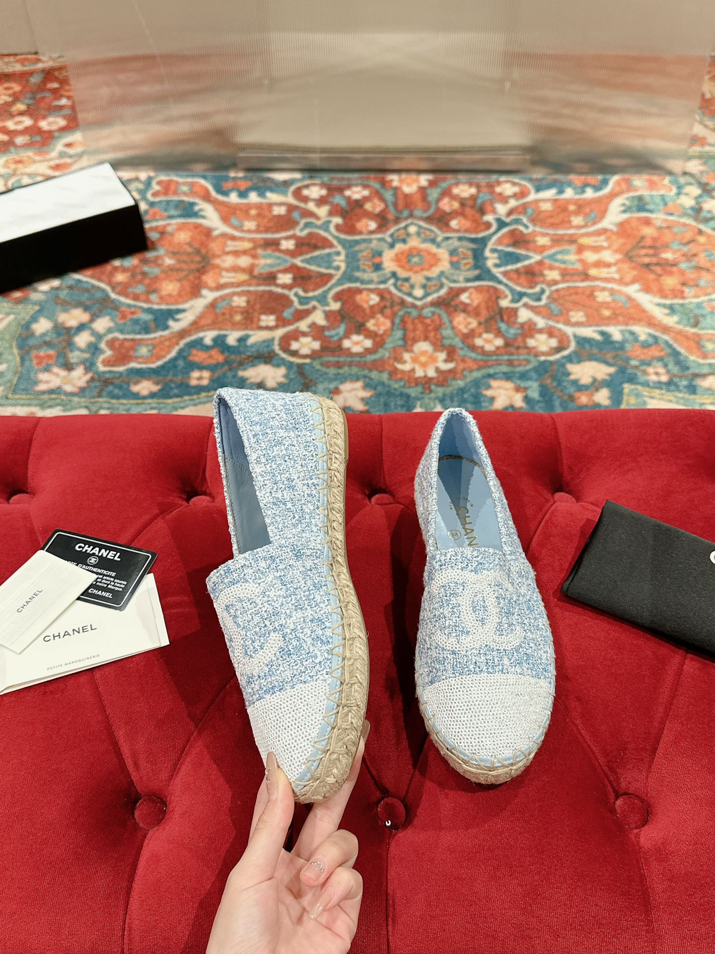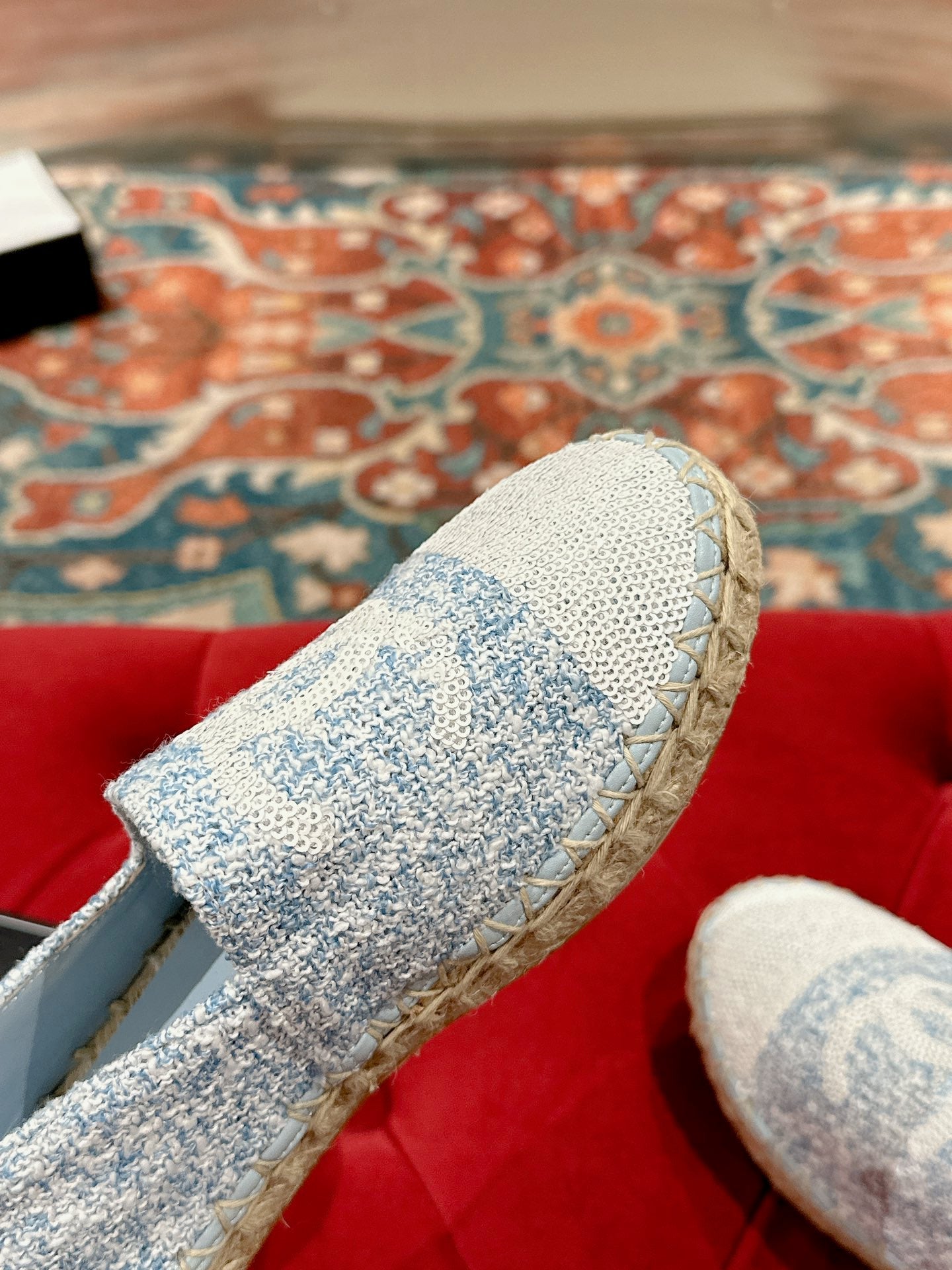 cc espadrilles cloud blue fabric white sequin