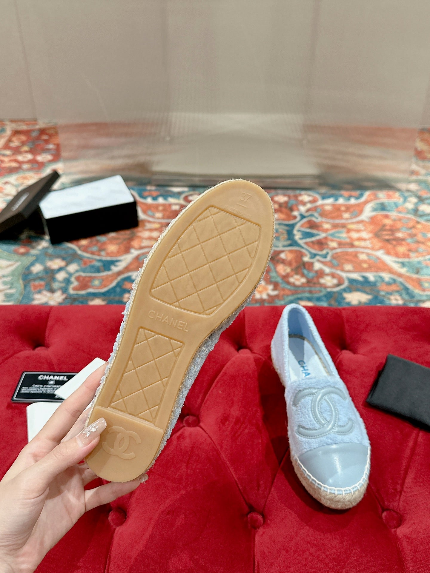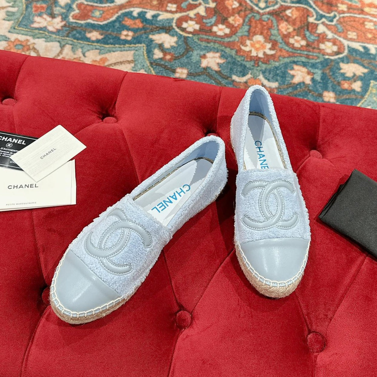 cc espadrilles cloud blue fleece fabric calfskin