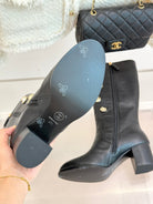 CC High Heel Boots Black Sheepskin Mix Charm 512034