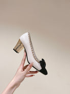CC HIGH HEELS WHITE CALFSKIN AND FABRIC
