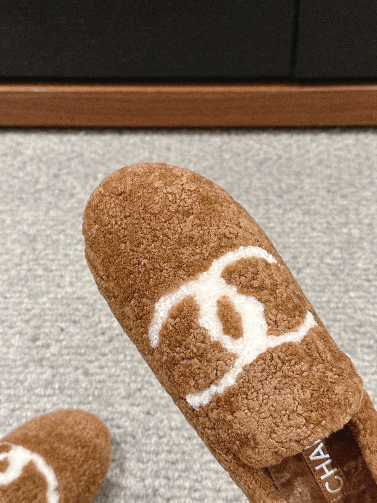 CC LOAFERS IN CINNAMON BROWN FLEECE WITH WHITE LOGO