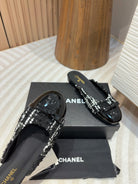 cc mule black tweed white sequin black patent calfskin