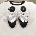 CC MULE WITH SILK WHITE BOW AND BLACK LAMBSKIN