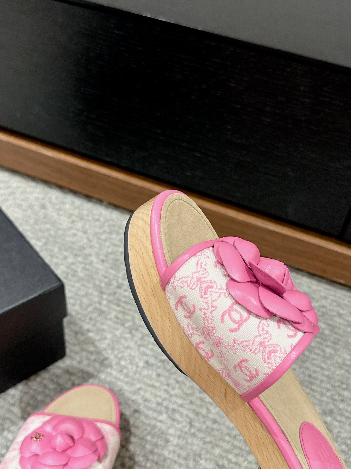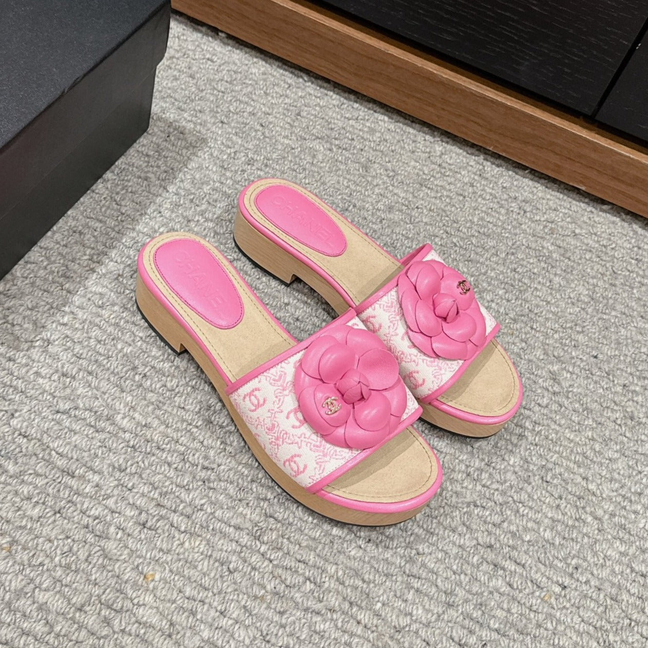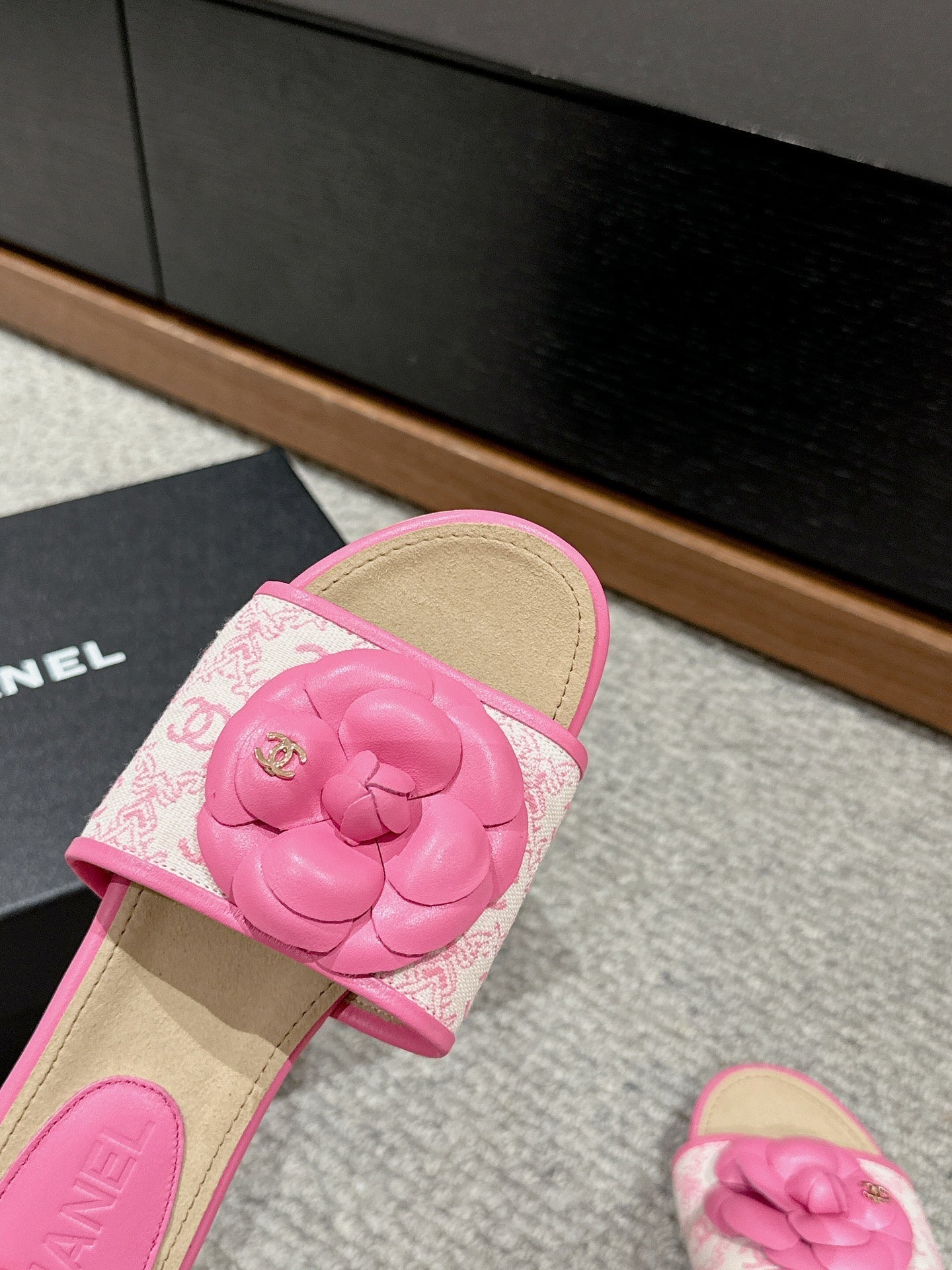 cc sandal flower white canvas pink calfskin