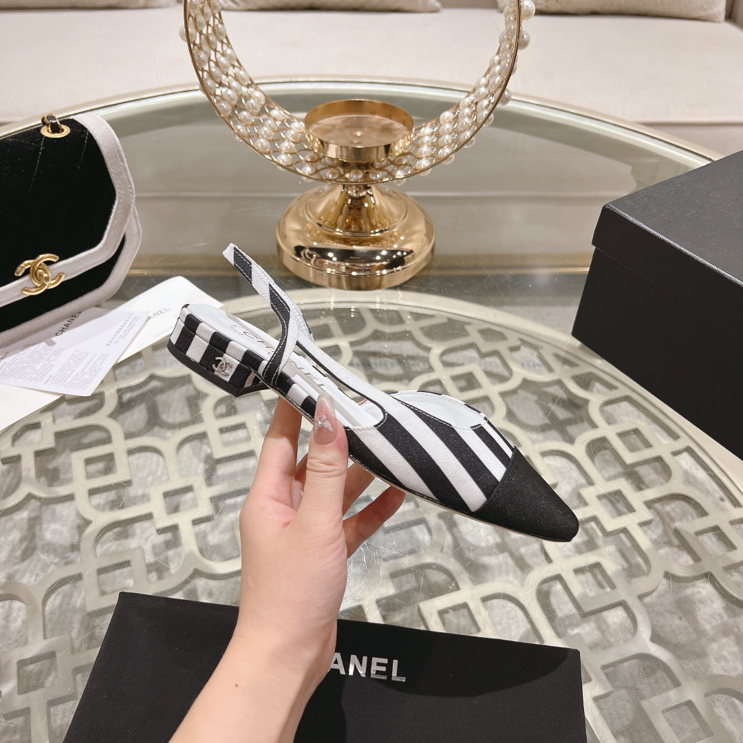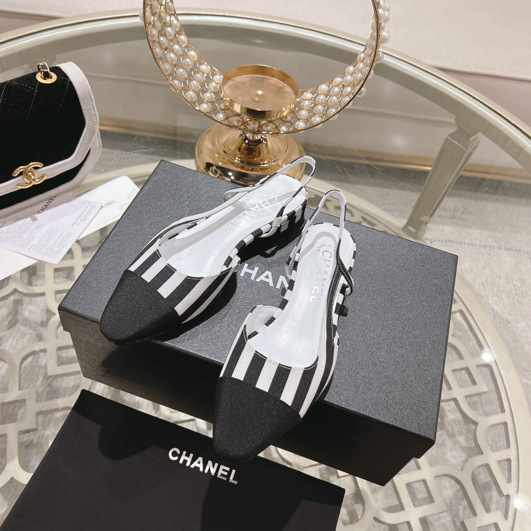 CC SLINGBACK IN WHITE MIX BLACK FABRIC