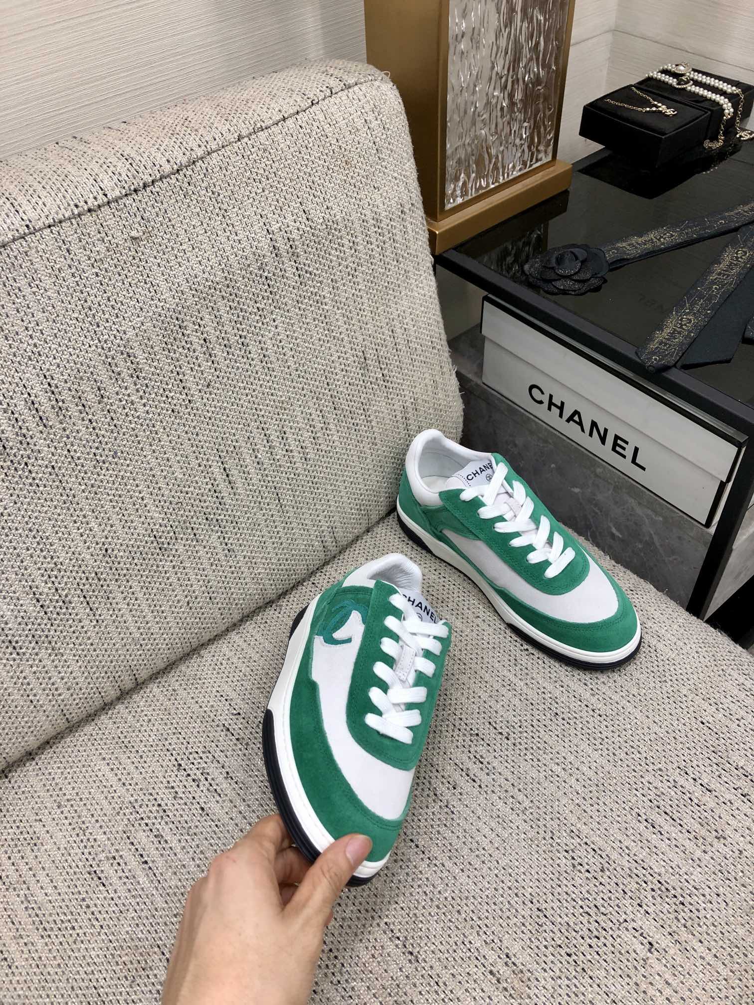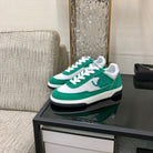 CC Sneaker In Green Mix White Suede