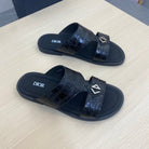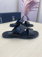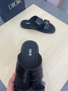 CD ALIDAS CROSS CROCODILE MOTIF SANDAL BLACK CALFSKIN