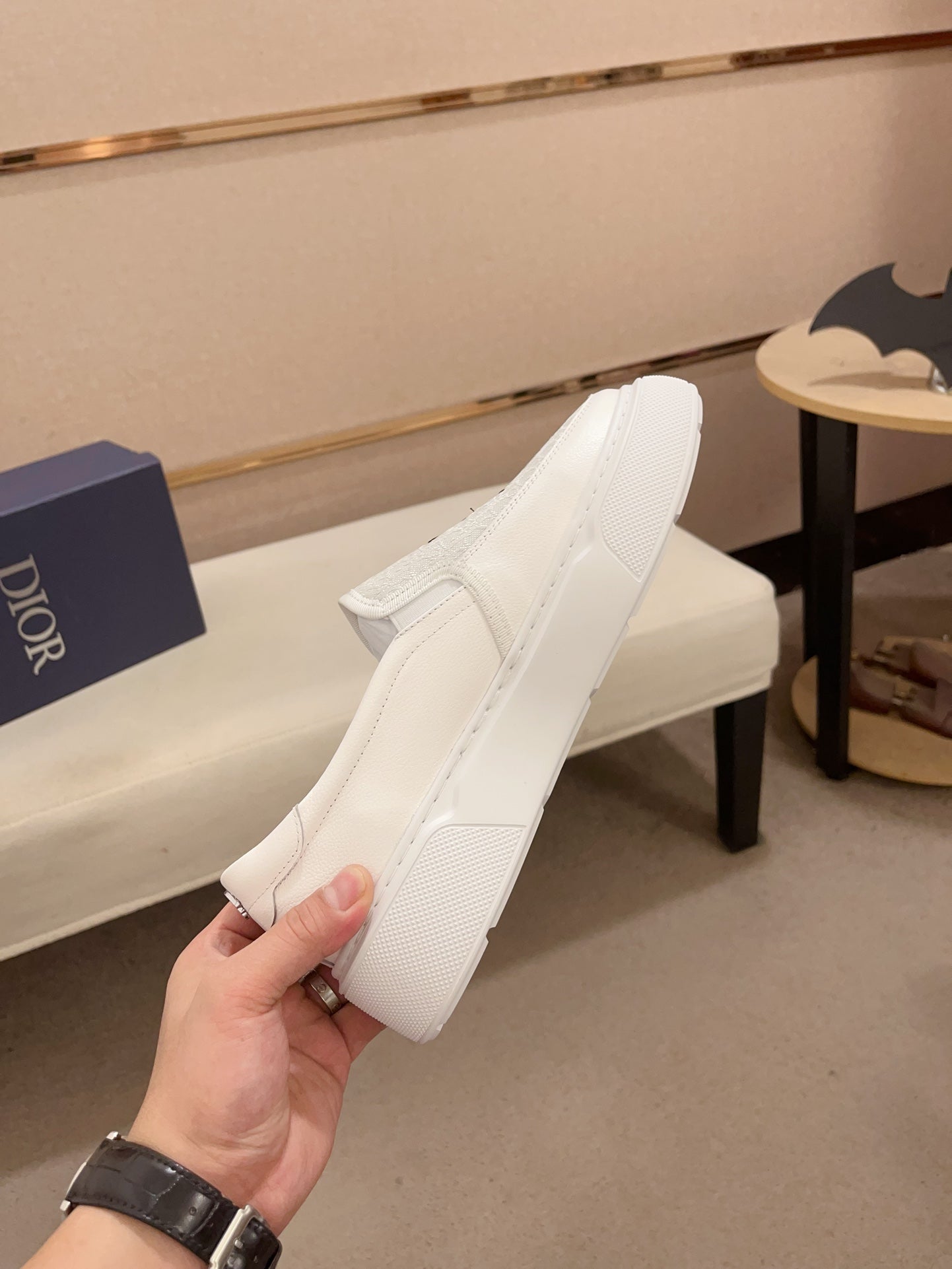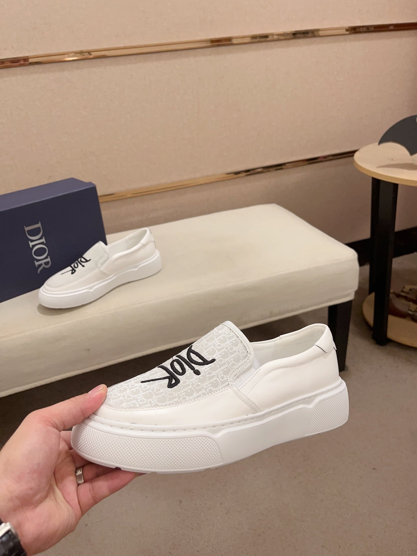 CD B23 SLIP ON WHITE CALFSKIN AND JACQUARD