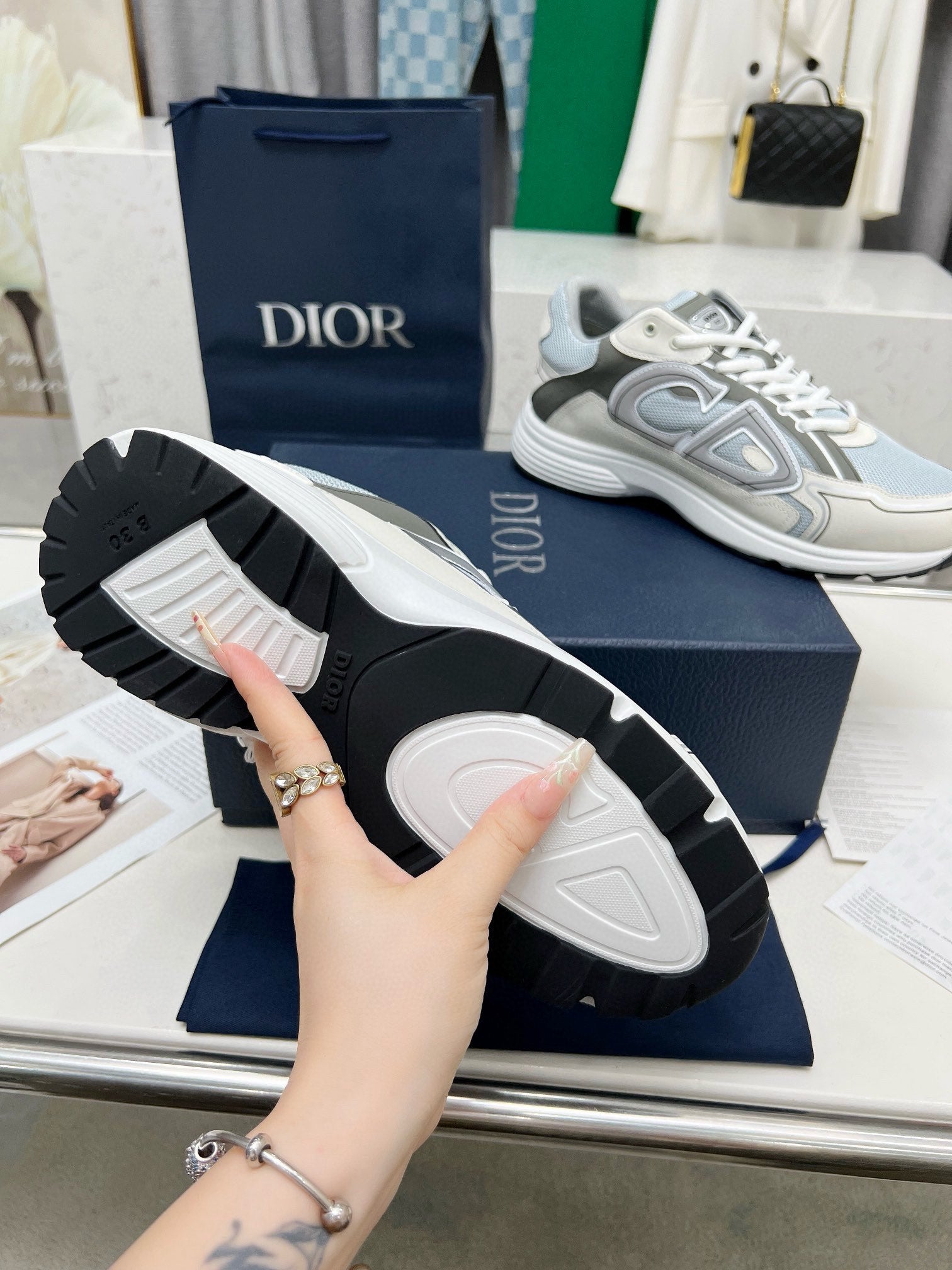 CD B30 SNEAKER GRAY AND CREAM MESH FABRIC