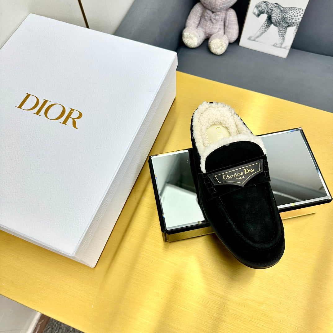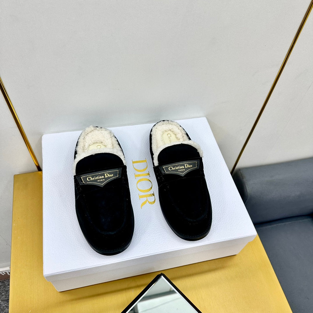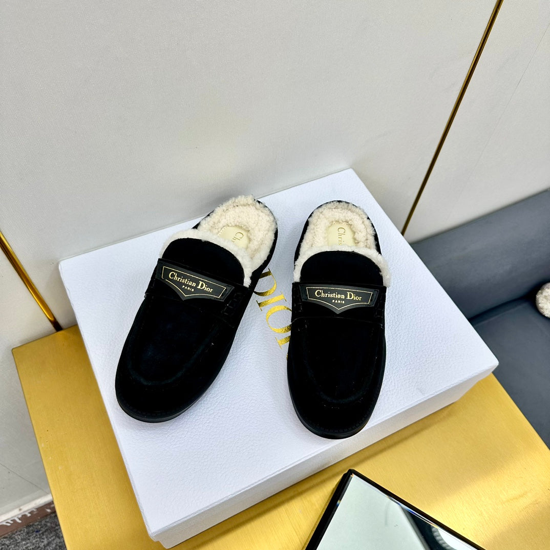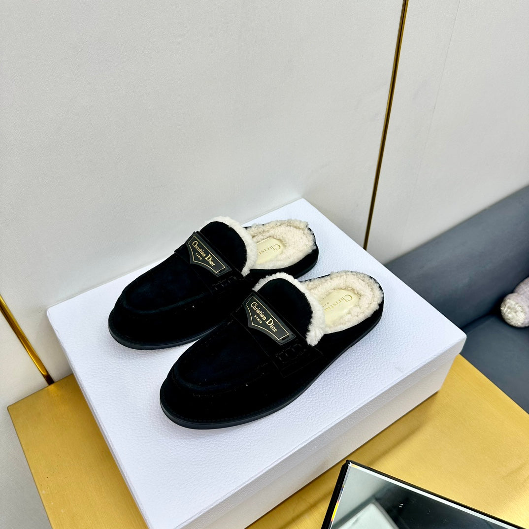 CD Boy Mule In Black Suede With Wool Fleece Lining 111828