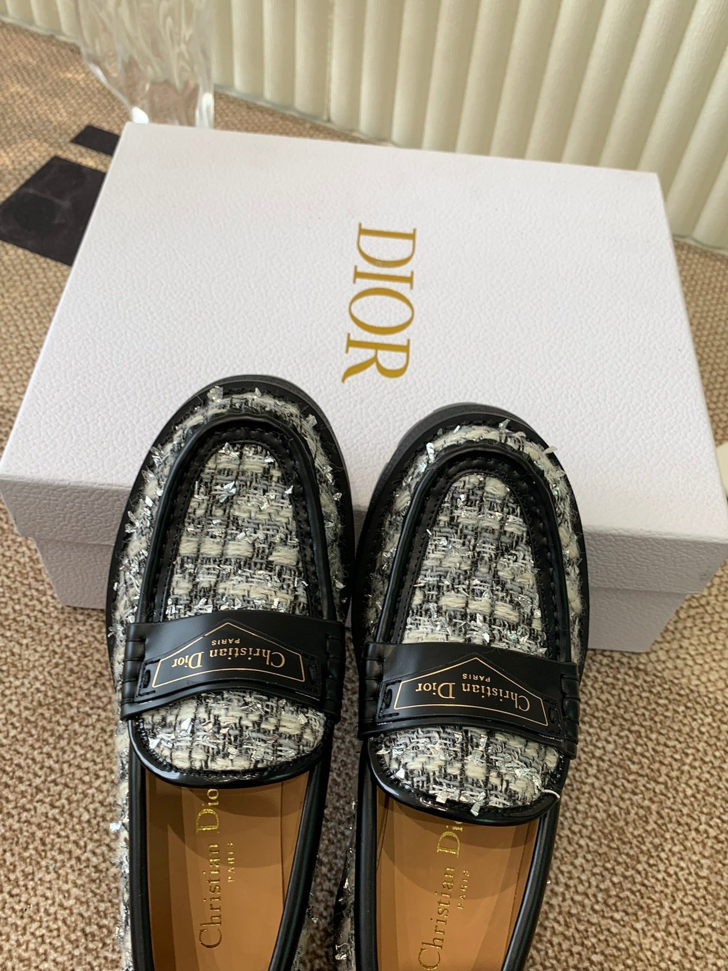 CD Boy Platform Loafer In Black Mix White Tweed Fabric And Cowhide 113485