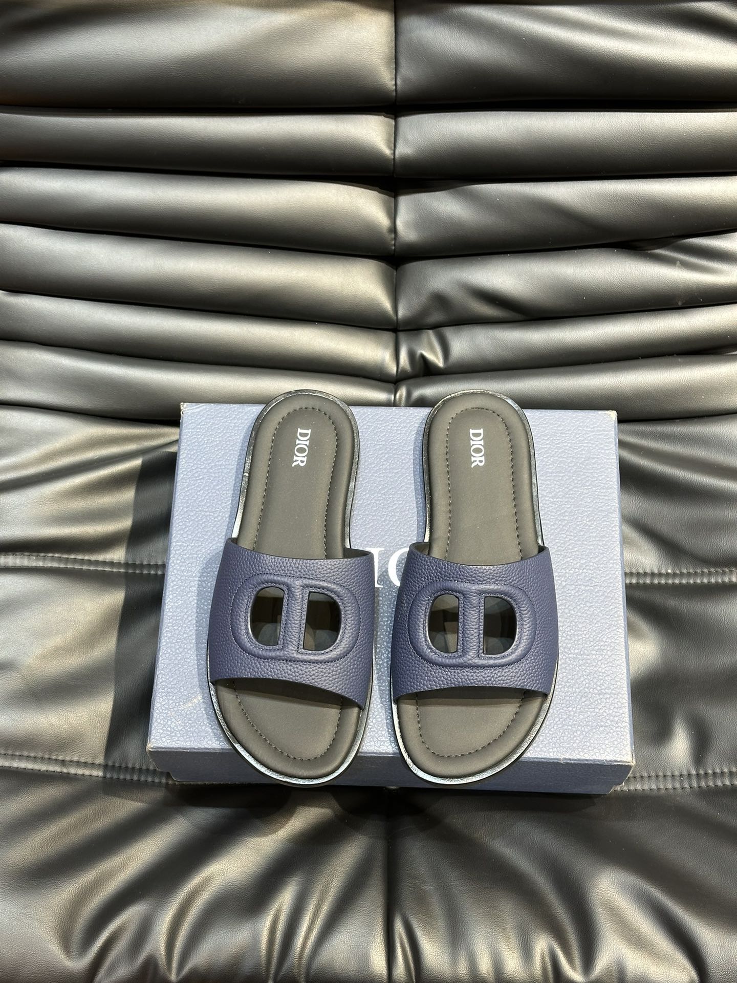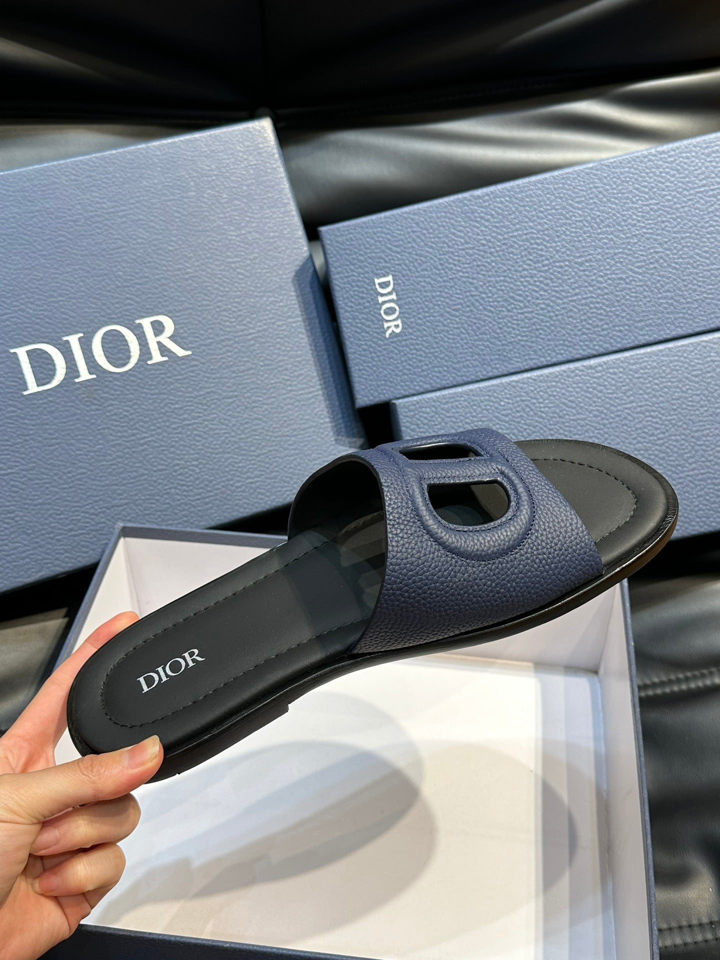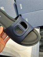 CD D-CLUB SLIDE SLIPPER NAVY GRAINED CALFSKIN