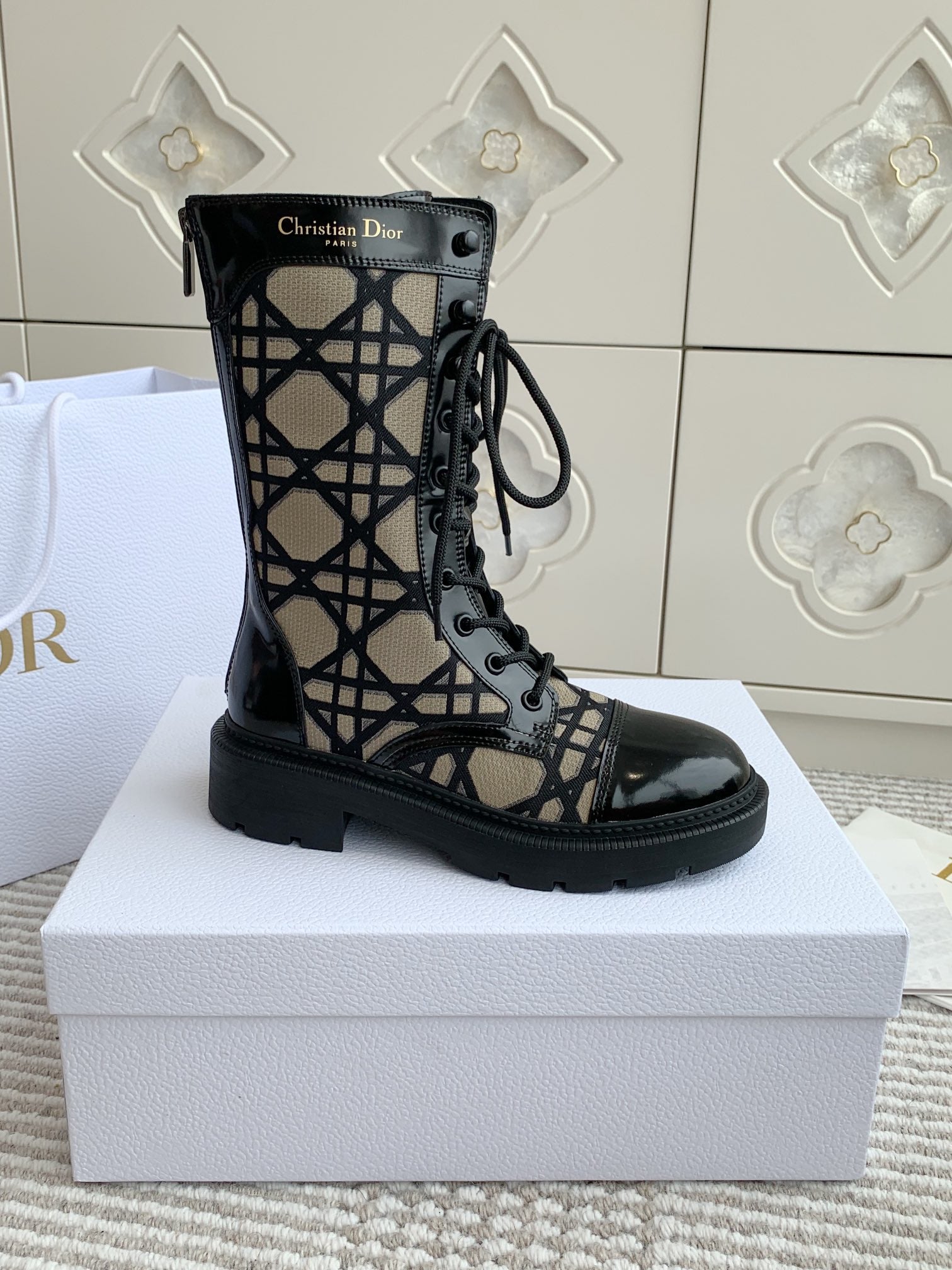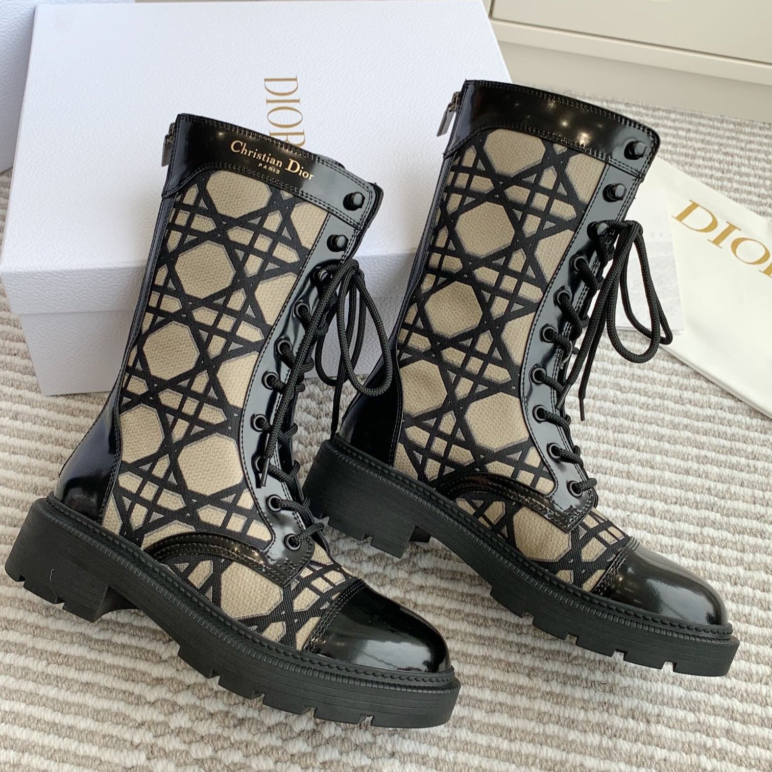 CD D-Unit Ankle Boot In Dark Beige Mix Black Canvas And Glossy Cowhide 105082
