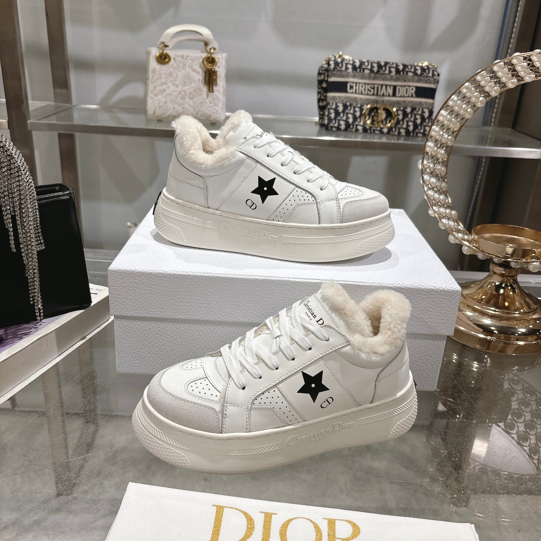CD Dior Star Platform Sneaker In White Cowhide 996424