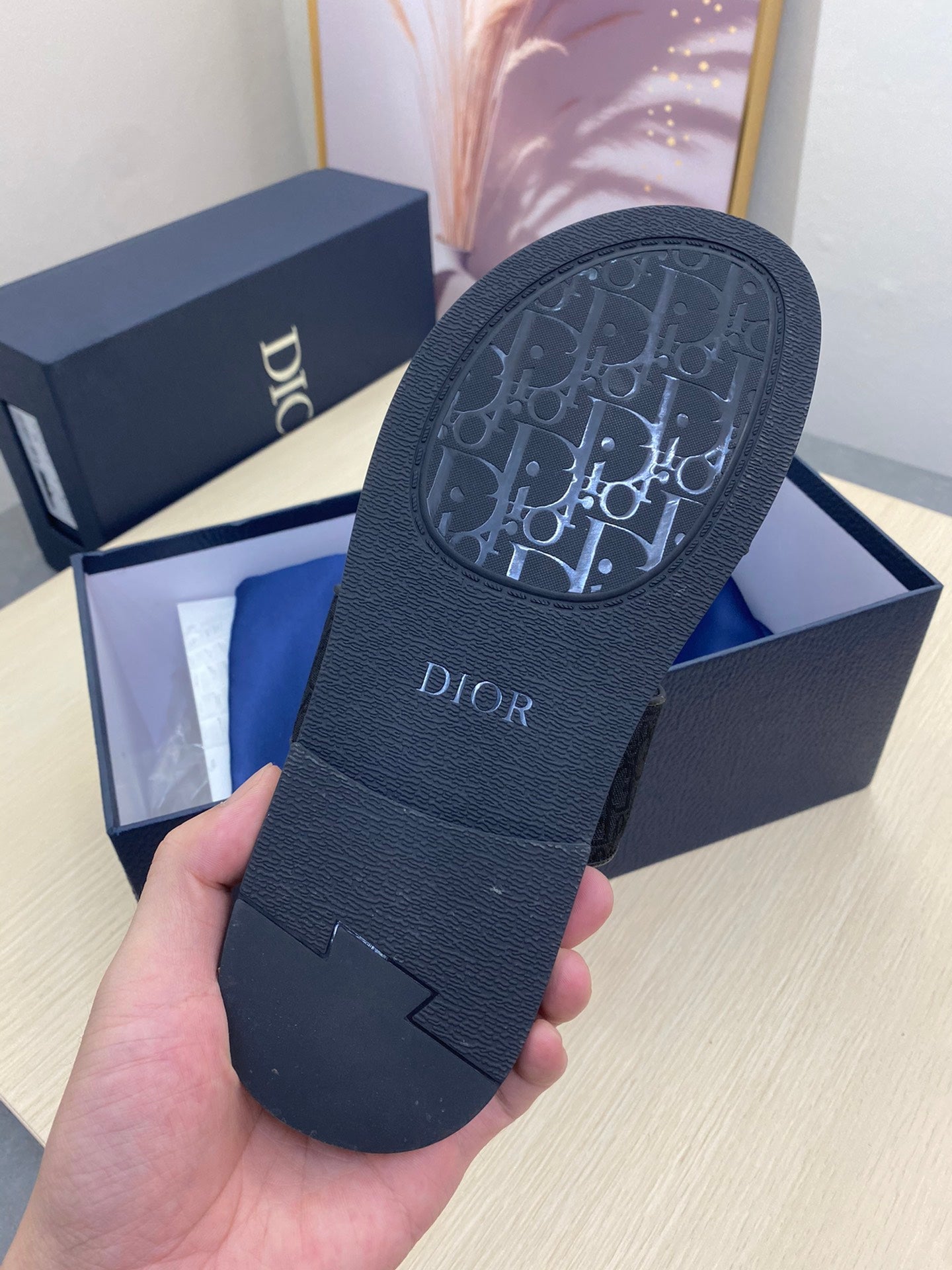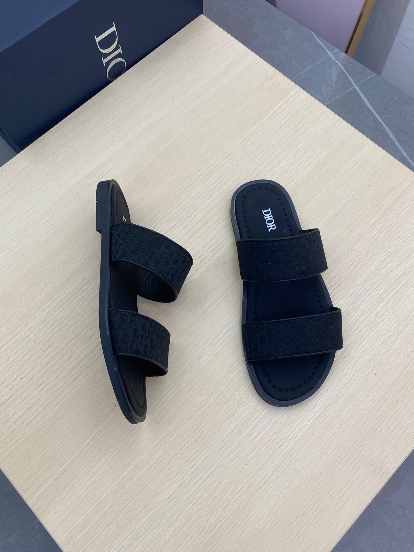 CD DOUBLE STRAP SLIPPER BLACK JACQUARD
